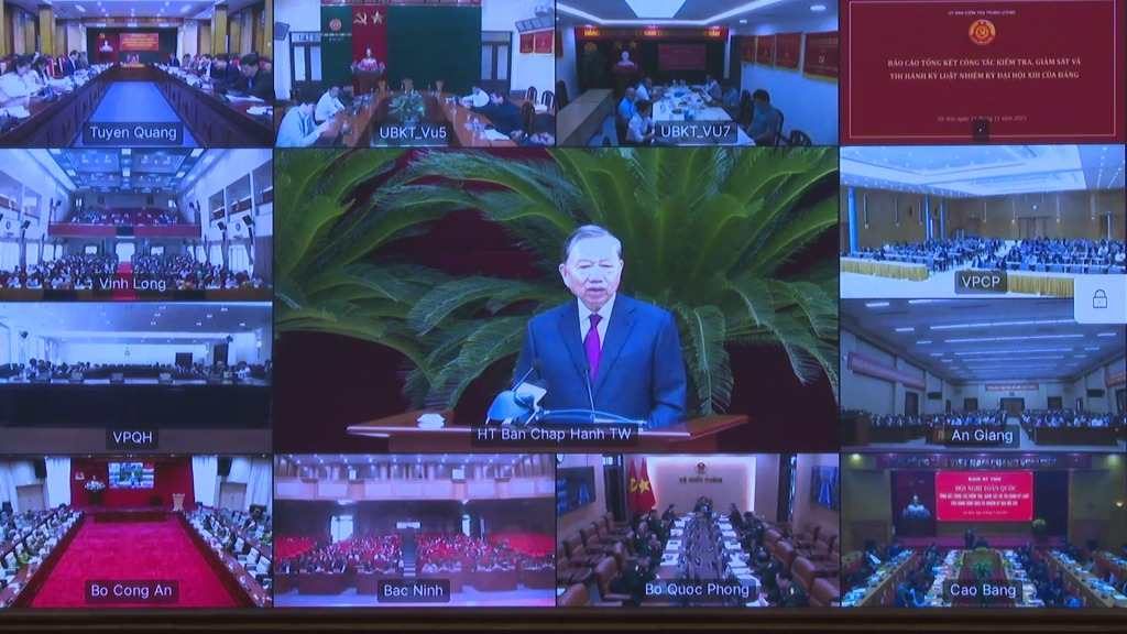 Phát biểu chỉ đạo hội nghị, Tổng Bí thư Tô Lâm đánh giá cao kết quả đạt được trong công tác KTGS và thi hành kỷ luật của Đảng trong nhiệm kỳ qua, góp phần quan trọng giữ vững sự ổn định chính trị, củng cố niềm tin của nhân dân, tăng cường năng lực lãnh đạo và sức chiến đấu của Đảng. Yêu cầu ban tổ chức hội nghị tiếp thu đầy đủ các ý kiến đóng góp để hoàn thiện báo cáo trình Bộ Chính trị, Ban Bí thư và trình Ban Chấp hành Trung ương, phục vụ xây dựng các báo cáo chuyên đề trình Đại hội XIV của Đảng. Tổng Bí thư nhấn mạnh: Công tác kiểm tra, giám sát phải đổi mới mạnh mẽ về tư duy, phương pháp và cách làm. Toàn ngành kiểm tra phải hiện đại hơn, dữ liệu hóa mạnh mẽ hơn, có khả năng cảnh báo sớm, phòng ngừa từ gốc và từ xa.