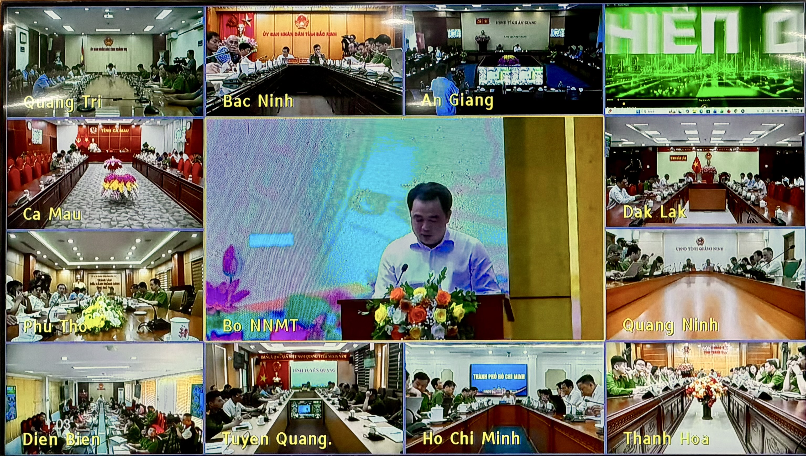 Tại điểm cầu tỉnh, tham dự có các đồng chí: Hoàng Văn Thạch, Tỉnh ủy viên, Phó Chủ tịch UBND tỉnh; Nông Quốc Hùng, Tỉnh ủy viên, Giám đốc Sở NN&MT; Thượng tá Lê Thanh Bình, Phó Giám đốc Công an tỉnh và lãnh đạo một số sở, ngành liên quan.