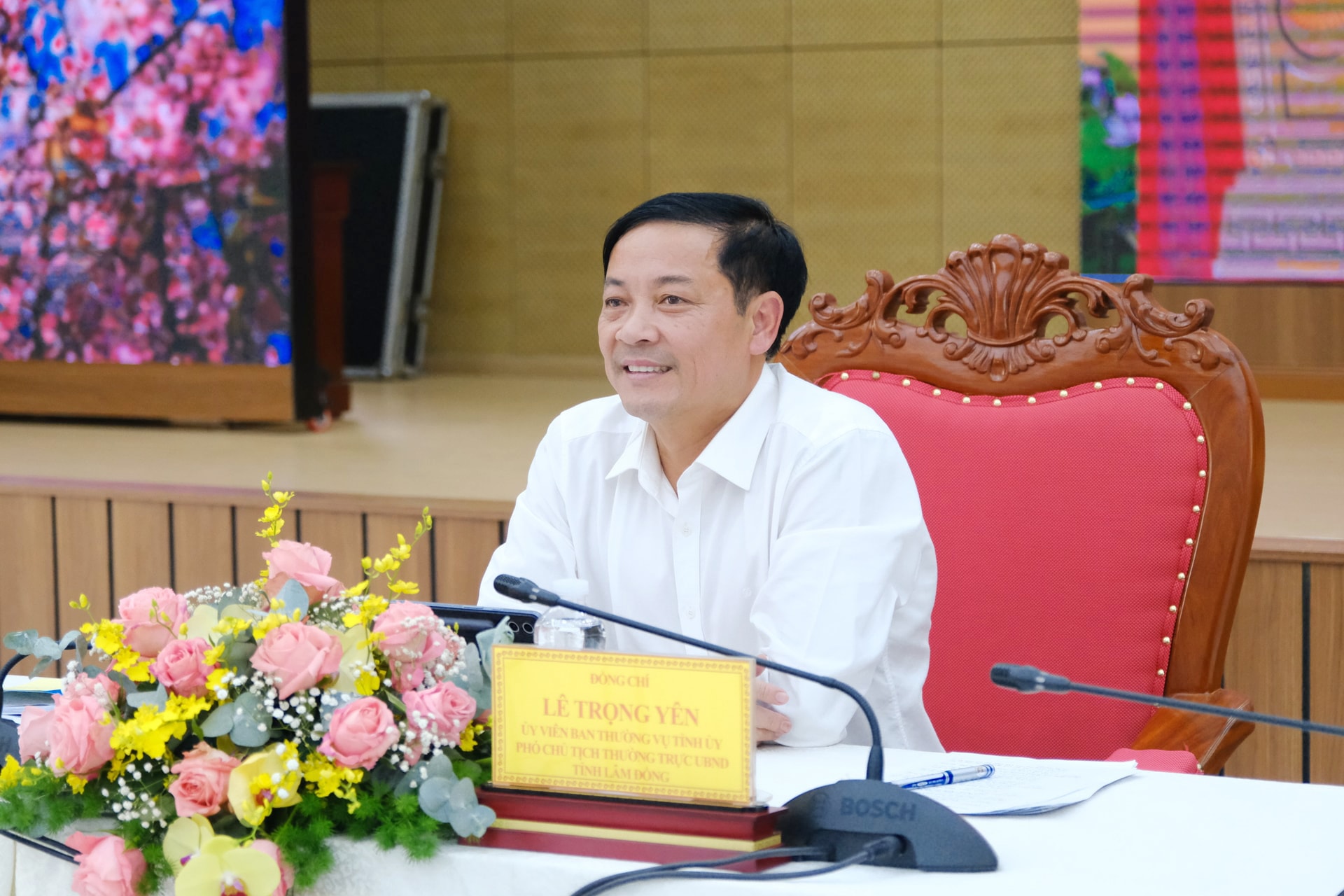 Tại điểm cầu Lâm Đồng, đồng chí Lê Trọng Yên, Ủy viên Ban Thường vụ Tỉnh ủy, Phó Chủ tịch Thường trực UBND tỉnh chủ trì, cùng sự tham dự của lãnh đạo các sở, ban, ngành, đơn vị liên quan.