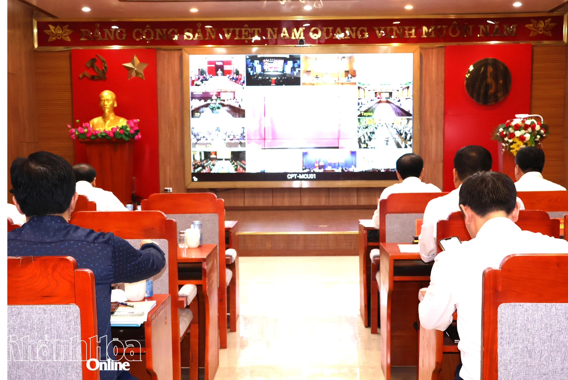 Tham dự tại điểm cầu Tỉnh ủy Khánh Hòa có các đồng chí: Nghiêm Xuân Thành - Ủy viên Trung ương Đảng, Bí thư Tỉnh ủy; Trần Phong - Phó Bí thư Tỉnh ủy, Chủ tịch UBND tỉnh; Nguyễn Khắc Hà - Phó Bí thư Tỉnh ủy, Chủ tịch Ủy ban MTTQ Việt Nam tỉnh; các đồng chí trong Ban Thường vụ Tỉnh ủy; thành viên Ban Chỉ đạo tỉnh; lãnh đạo các sở, ban, ngành, cơ quan, đơn vị trong tỉnh.