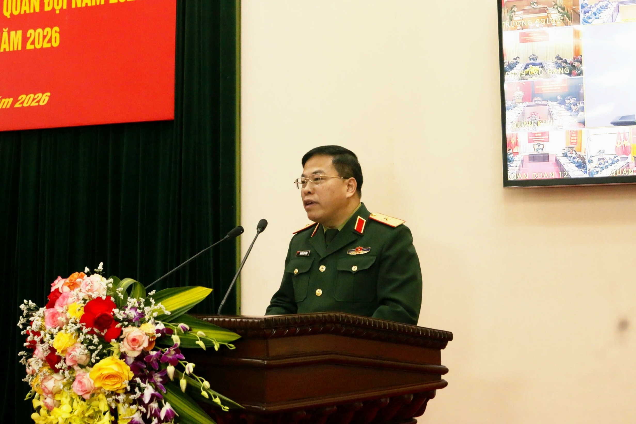 Hội nghị lắng nghe các bài phát biểu của Tổng cục Hậu cần - Kỹ thuật, Quân khu 2, Quân khu 5, Quân khu 9, Quân chủng Hải quân… về những kết quả đã đạt được trong công tác pháp chế năm 2025 và định hướng năm 2026.