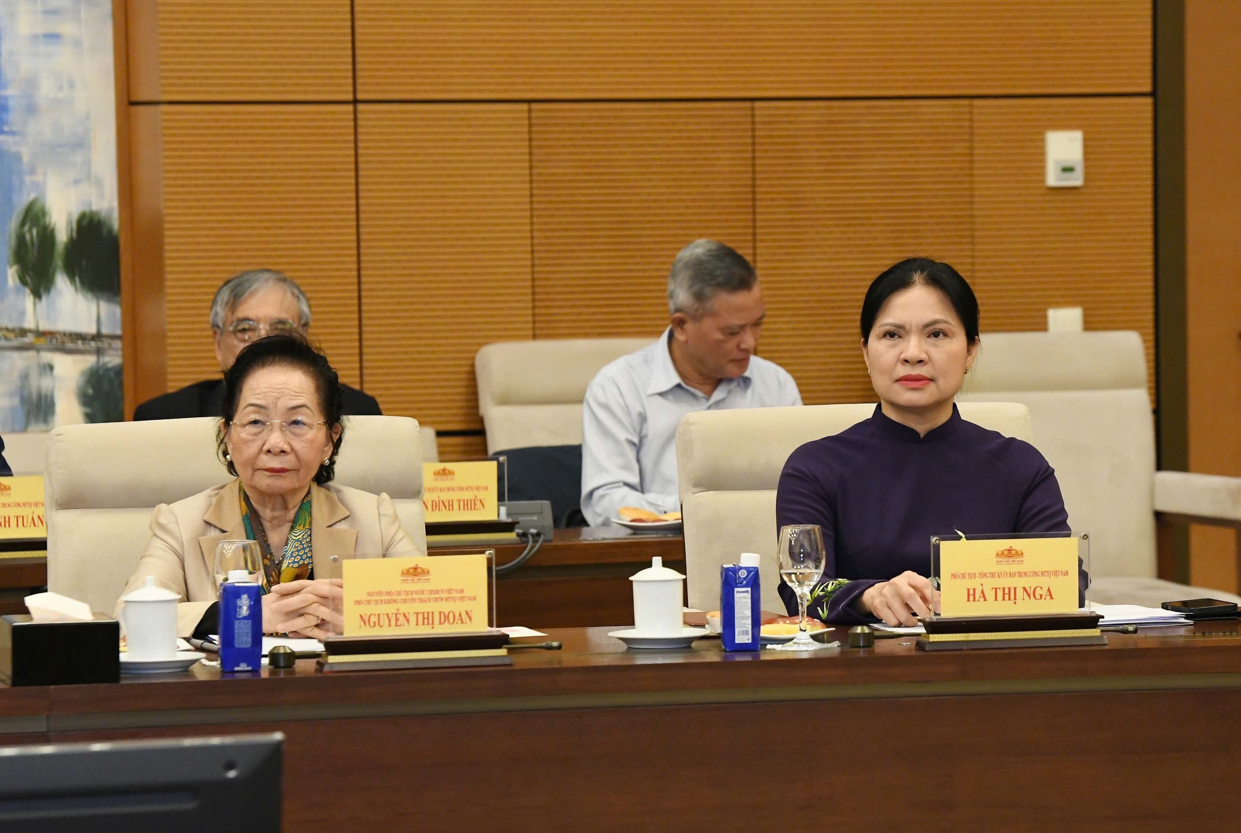 Nguyên Phó Chủ tịch nước Nguyễn Thị Doan, Phó Chủ tịch - Tổng Thư ký Ủy ban Trung ương MTTQ Việt Nam Hà Thị Nga dự Hội nghị