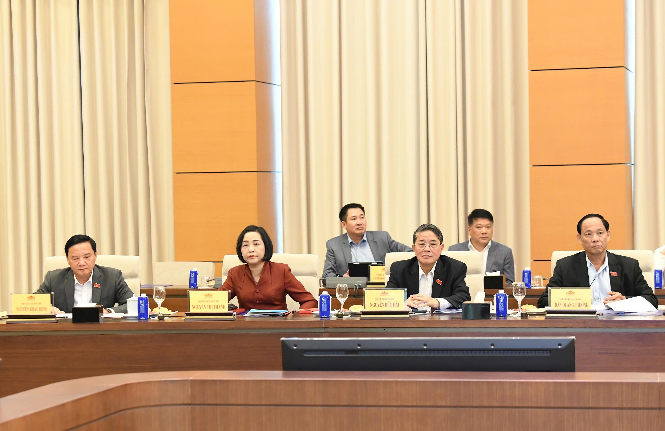 Phó Chủ tịch Quốc hội Nguyễn Khắc Định, Phó Chủ tịch Quốc hội Nguyễn Đức Hải, Phó Chủ tịch Quốc hội, Thượng tướng Trần Quang Phương và Phó Chủ tịch Quốc hội Nguyễn Thị Thanh dự Hội nghị