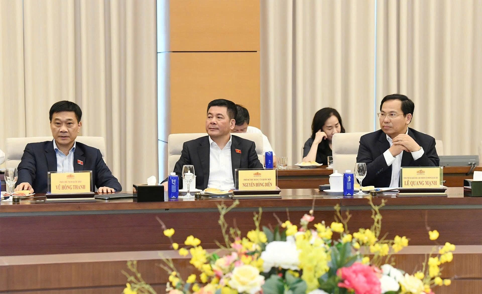 Phó Chủ tịch Quốc hội Vũ Hồng Thanh; Tổng Thư ký Quốc hội, Chủ nhiệm Văn phòng Quốc hội Lê Quang Mạnh; Phó Bí thư Đảng ủy Quốc hội Nguyễn Hồng Diên tham dự hội n ghị
