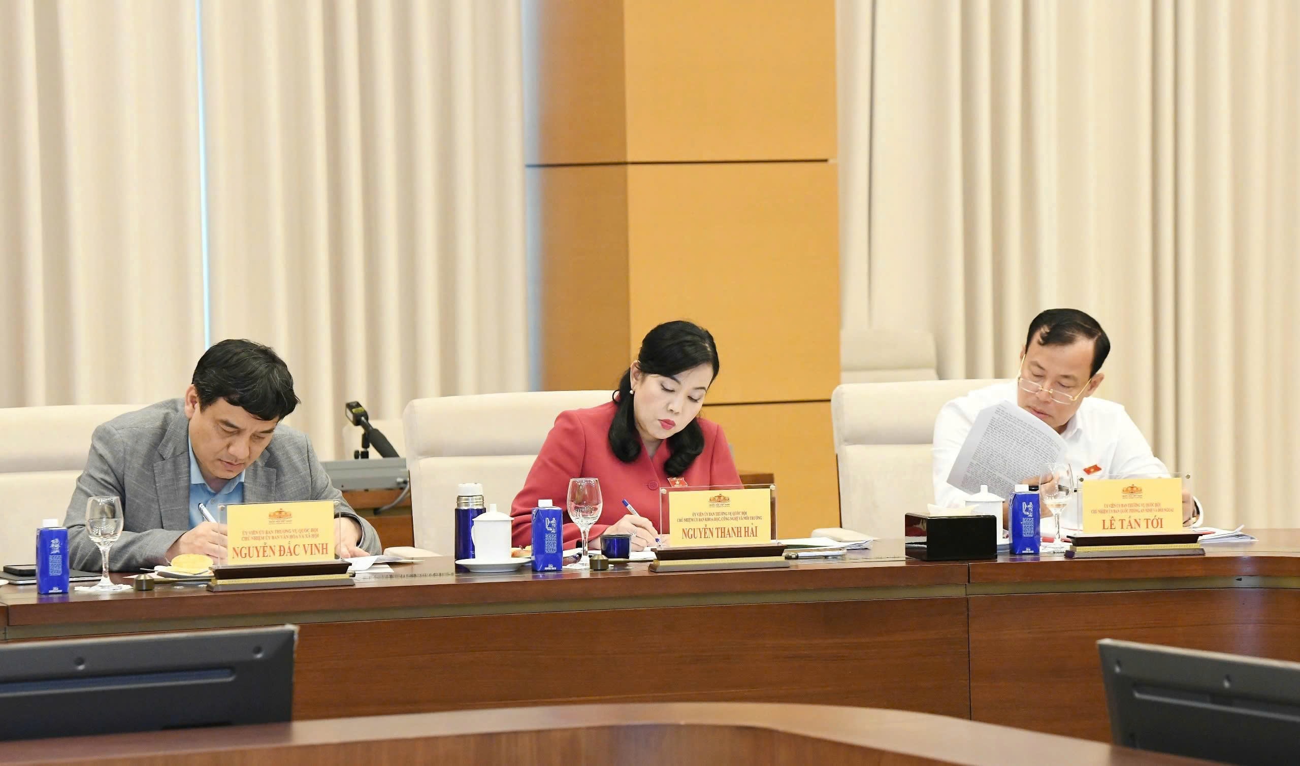 Chủ nhiệm Ủy ban Quốc phòng, An ninh và Đối ngoại, Thượng tướng Lê Tấn Tới; Chủ nhiệm Ủy ban Văn hóa và Xã hội Nguyễn Đắc Vinh; Chủ nhiệm Ủy ban Khoa học, Công nghệ và Môi trường Nguyễn Thanh Hải tham dự hội nghị