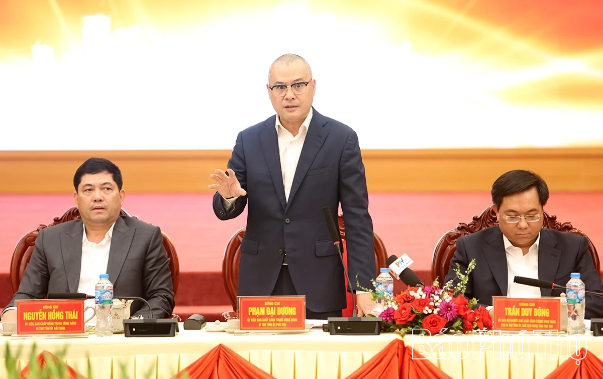 Thống nhất cao với các nội dung mà 3 tỉnh đã thảo luận, đồng chí Bí thư Tỉnh ủy Phú Thọ Phạm Đại Dương gợi mở định hướng hợp tác trong thời gian tới. Trọng tâm là định vị lại những tiềm năng, lợi thế của từng vùng, từng tỉnh để có định hướng phát triển mang tính chiến lược; tăng cường hợp tác, bổ trợ các điều kiện cần thiết cho nhau. Trong quá trình thực hiện phải có kế hoạch cụ thể, phân công rõ người, rõ việc, rõ mục tiêu, rõ thời gian và rõ kết quả, hướng tới mục tiêu phấn đấu tăng trưởng hai con số.