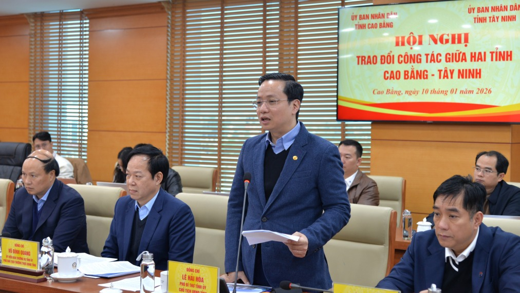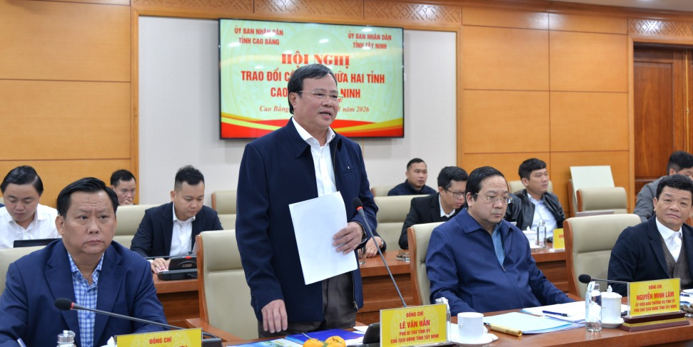 Phát biểu tại hội nghị, Phó Bí thư Tỉnh ủy, Chủ tịch UBND tỉnh Lê Hải Hòa đánh giá cao ý nghĩa của chuyến công tác, trao đổi kinh nghiệm giữa hai địa phương. Nhấn mạnh, Cao Bằng và Tây Ninh tuy cách xa về vị trí địa lý nhưng có nhiều điểm tương đồng: Cao Bằng là tỉnh biên giới miền núi, cửa ngõ phía Bắc với Trung Quốc, Tây Ninh giữ vai trò then chốt kết nối động lực phát triển của Đông Nam Bộ với Campuchia và thị trường ASEAN nhờ vị trí chiến lược, đường biên giới dài và nhiều cửa khẩu.