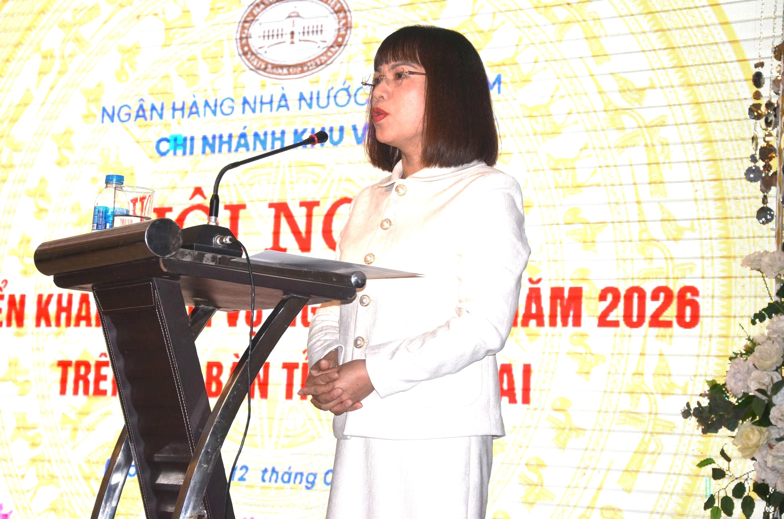 Báo cáo tại Hội nghị, đồng chí Trương Thu Hòa - Giám đốc NHNN chi nhánh Khu vực 4 cho biết, năm 2025 là năm có ý nghĩa đặc biệt đối với hệ thống ngân hàng trên địa bàn, đánh dấu sự ra đời và chính thức đi vào hoạt động của NHNN theo mô hình khu vực từ ngày 01/3/2025, thực hiện chức năng quản lý nhà nước về tiền tệ và hoạt động ngân hàng trên địa bàn 03 tỉnh: Phú Thọ, Tuyên Quang và Lào Cai. Qua đó, mạng lưới ngân hàng trên địa bàn Khu vực 4 được mở rộng với 30 hệ thống ngân hàng với tổng số đầu mối chi nhánh ngân hàng cấp I là 110 và 101 Quỹ tín dụng nhân dân; trong đó địa bàn Lào Cai có 31 chi nhánh Cấp I và 18 Quỹ tín dụng nhân dân, 20 chi nhánh cấp II của hệ thống Ngân hàng Nông nghiệp và Phát triển nông thôn và 118 phòng giao dịch của Ngân hàng Chính sách xã hội, Nông nghiệp và Phát triển nông thôn.