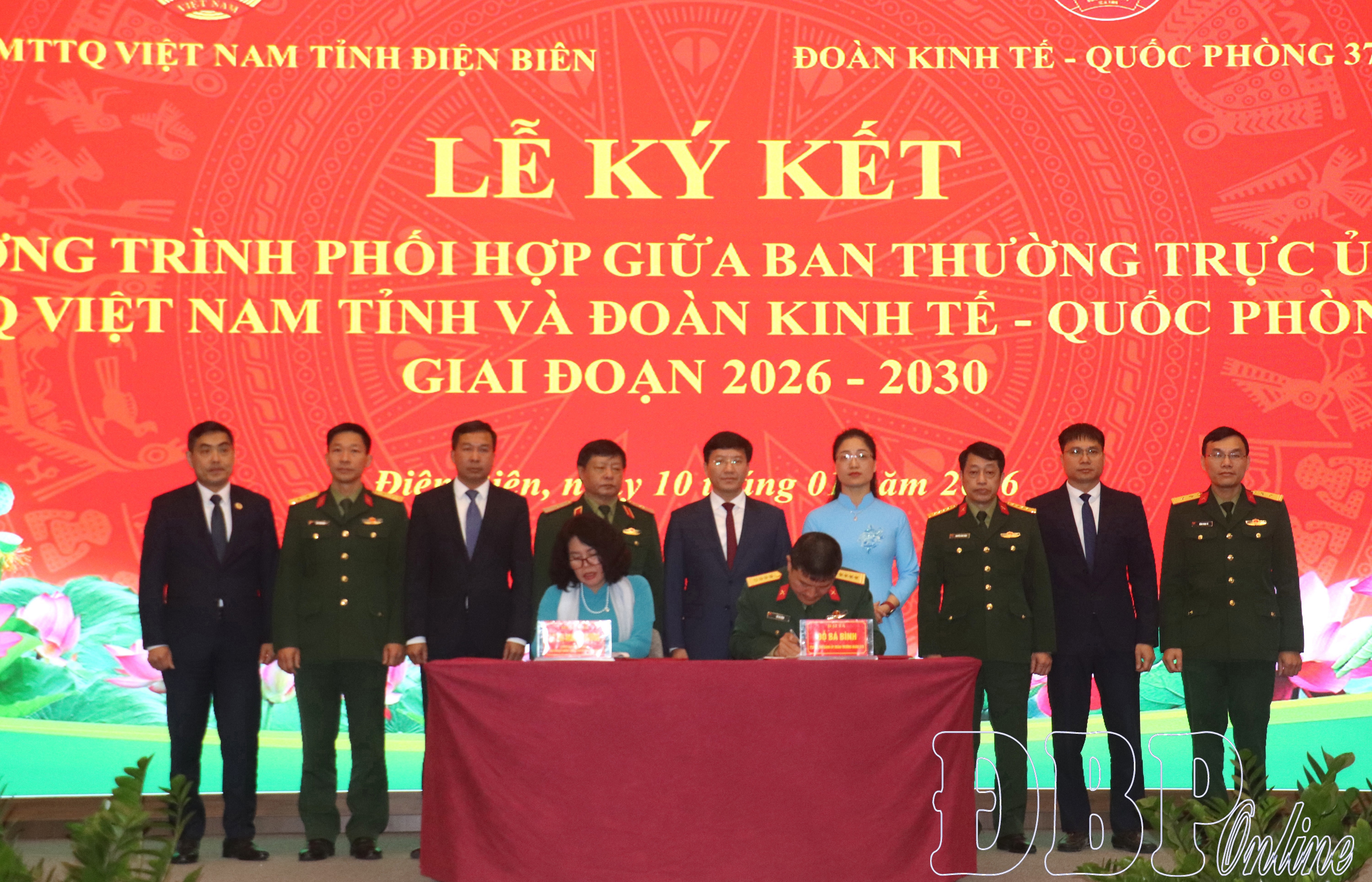Cũng tại hội nghị, Ban Thường trực Ủy ban MTTQ Việt Nam tỉnh và Đoàn Kinh tế - Quốc phòng 379 đã ký kết Chương trình phối hợp công tác; đồng thời ký kết Giao ước thi đua năm 2026 giữa Ban Thường trực Ủy ban MTTQ Việt Nam tỉnh và Ủy ban MTTQ Việt Nam các xã, phường.