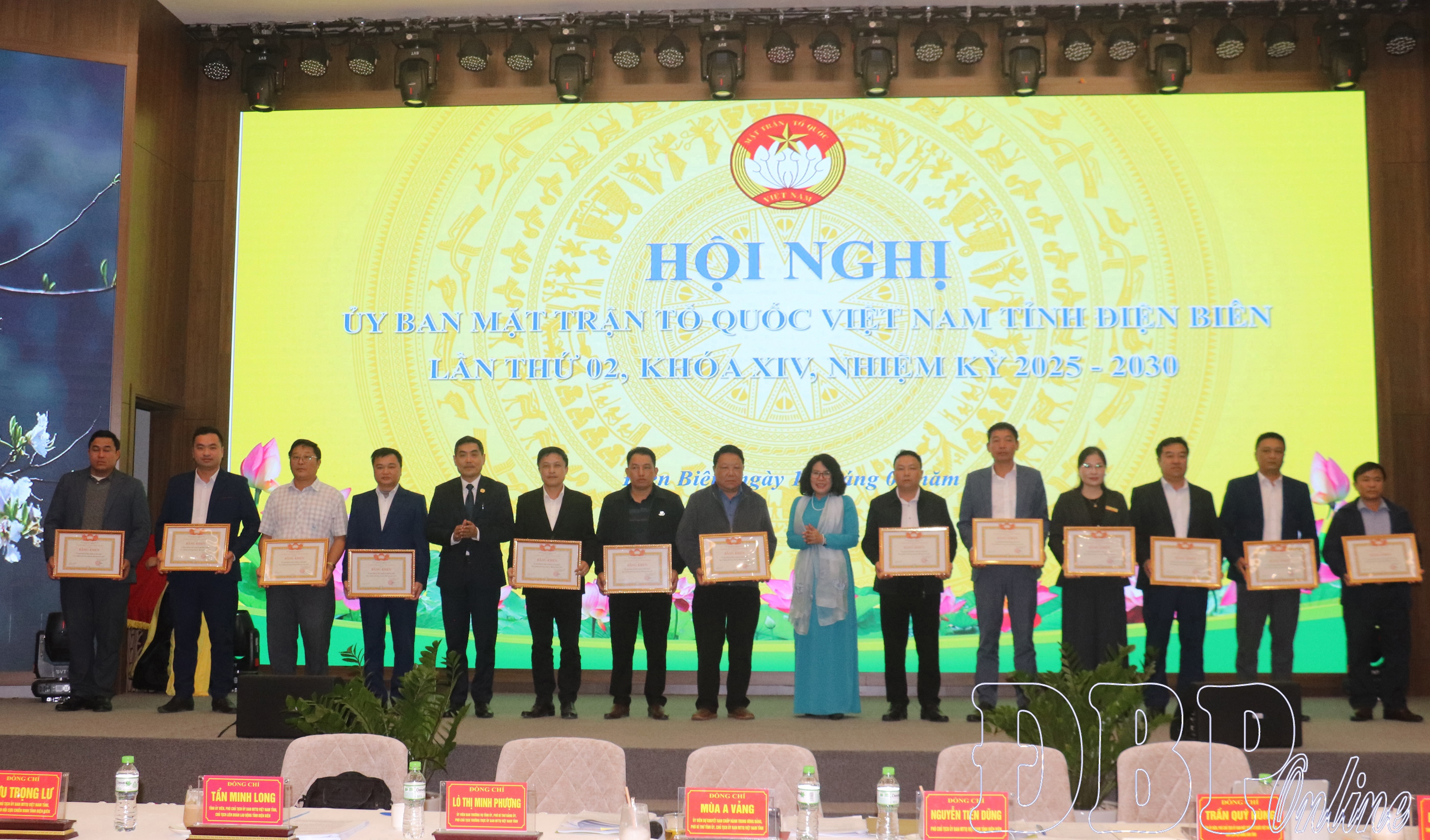 Đại diện lãnh đạo Ủy ban MTTQ Việt Nam tỉnh tặng Bằng khen cho các tập thể có thành tích trong công tác Mặt trận năm 2025.