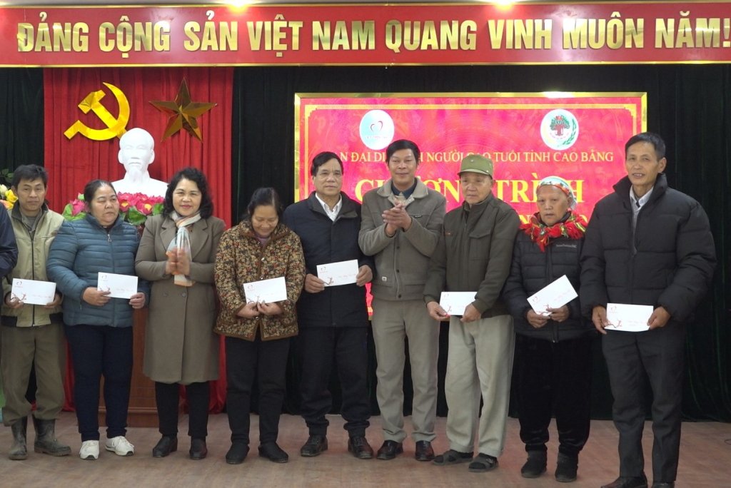 Lãnh đạo Hội Người cao tuổi tỉnh trao quà tết cho các hội viên khó khăn tại xã Tĩnh Túc.