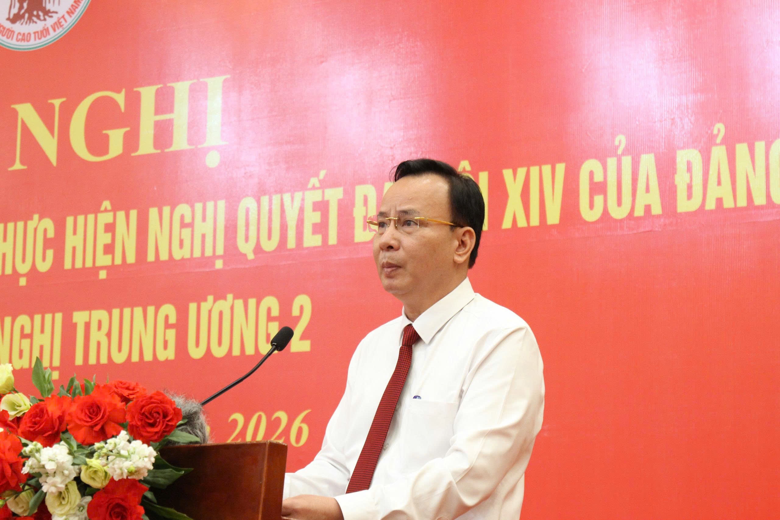 Phát biểu tại sự kiện, Phó Chủ tịch Hội NCT Nguyễn Lam chia sẻ, Bộ Chính trị đã ban hành Chỉ thị số 01-CT/TW ngày 23/1/2026, nhấn mạnh: “Xác định việc tổ chức nghiên cứu, học tập, quán triệt và triển khai thực hiện Nghị quyết Đại hội XIV là một trong những nhiệm vụ trọng tâm của năm 2026 và cả nhiệm kỳ, phải được thực hiện nghiêm túc, bài bản, khoa học. Đây là đợt sinh hoạt chính trị sâu rộng để mỗi cán bộ, đảng viên nắm vững và thực hiện đúng đắn, sáng tạo, hiệu quả Nghị quyết, tạo sự chuyển biến rõ rệt về nhận thức, thống nhất ý chí và hành động trong toàn Đảng, sự đồng thuận của Nhân dân, khơi dậy và phát huy truyền thống yêu nước, ý chí tự lực, tự cường, sức mạnh đại đoàn kết toàn dân tộc trong công cuộc xây dựng, phát triển đất nước và bảo vệ Tổ quốc”.