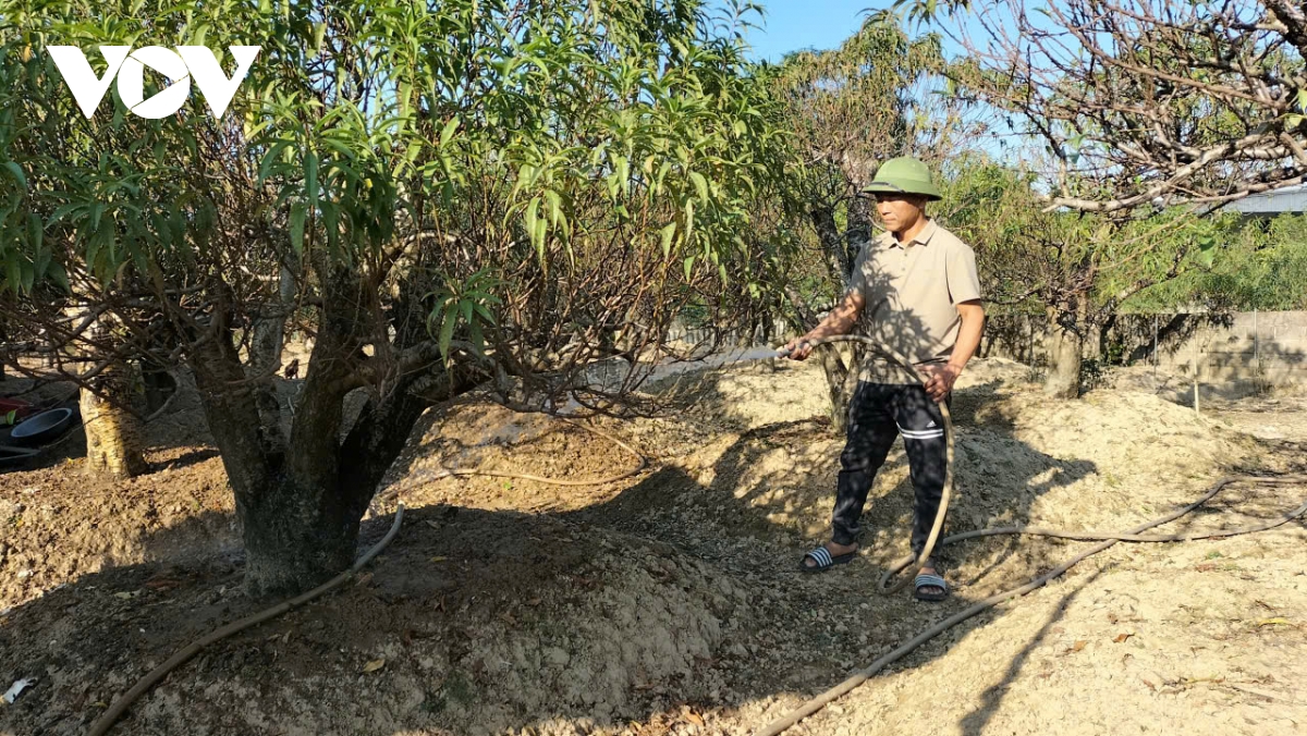 Cách đó không xa, vườn đào của anh Nguyễn Văn Bằng có phần khả quan hơn. Nhờ vị trí cao, nước lũ lên nhanh nhưng cũng rút sớm, hạn chế tình trạng cây bị ngâm lâu. Tuy không chết hàng loạt, nhưng theo anh Bằng, nguy cơ lớn nhất lúc này đối với vườn đào là nấm bệnh và cây suy yếu sau lũ. Với hơn 20 năm kinh nghiệm trồng đào, anh tăng cường phun thuốc phòng bệnh, bón phân hữu cơ, tỉa cành để cây sớm hồi phục. Từng gốc đào được anh tạo dáng cẩn thận, hướng tới nở hoa đúng dịp.