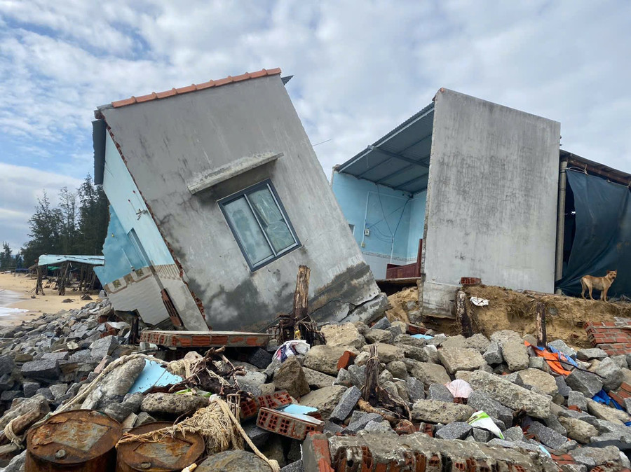 Sau cơn bão số 13, làng biển An Quang Đông (xã Đề Gi) chịu thiệt hại nặng nề, nhiều căn nhà bị sập, cuộc sống người dân đảo lộn.
