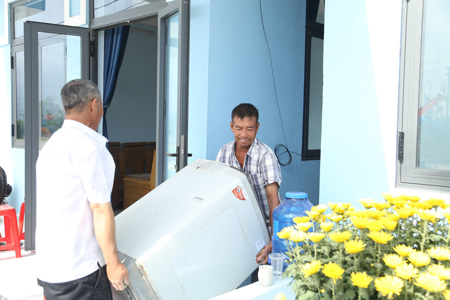 Ông Hoàng (bên phải) chuyển đồ đạc vào căn nhà mới tại An Quang Đông, chuẩn bị đón Tết trong niềm vui an cư. Ảnh: Hồng Phúc