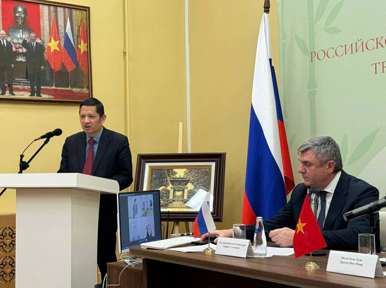 Về phía Việt Nam có Phó Giáo sư, Tiến sĩ Phạm Minh Sơn, Giám đốc Học viện Báo chí và Tuyên truyền (Học viện Chính trị quốc gia Hồ Chí Minh); Tiến sĩ Nguyễn Quốc Hùng, Giám đốc Quỹ thúc đẩy hợp tác Nga – Việt “Truyền thống và hữu nghị”, Phó Chủ tịch Liên hiệp các tổ chức người Việt Nam tại Nga; Tiến sĩ Mai Nguyễn Tuyết Hoa, Bí thư thứ nhất Đại sứ quán Việt Nam tại Nga, đại diện Bộ Giáo dục và Đào tạo Việt Nam tại Nga.