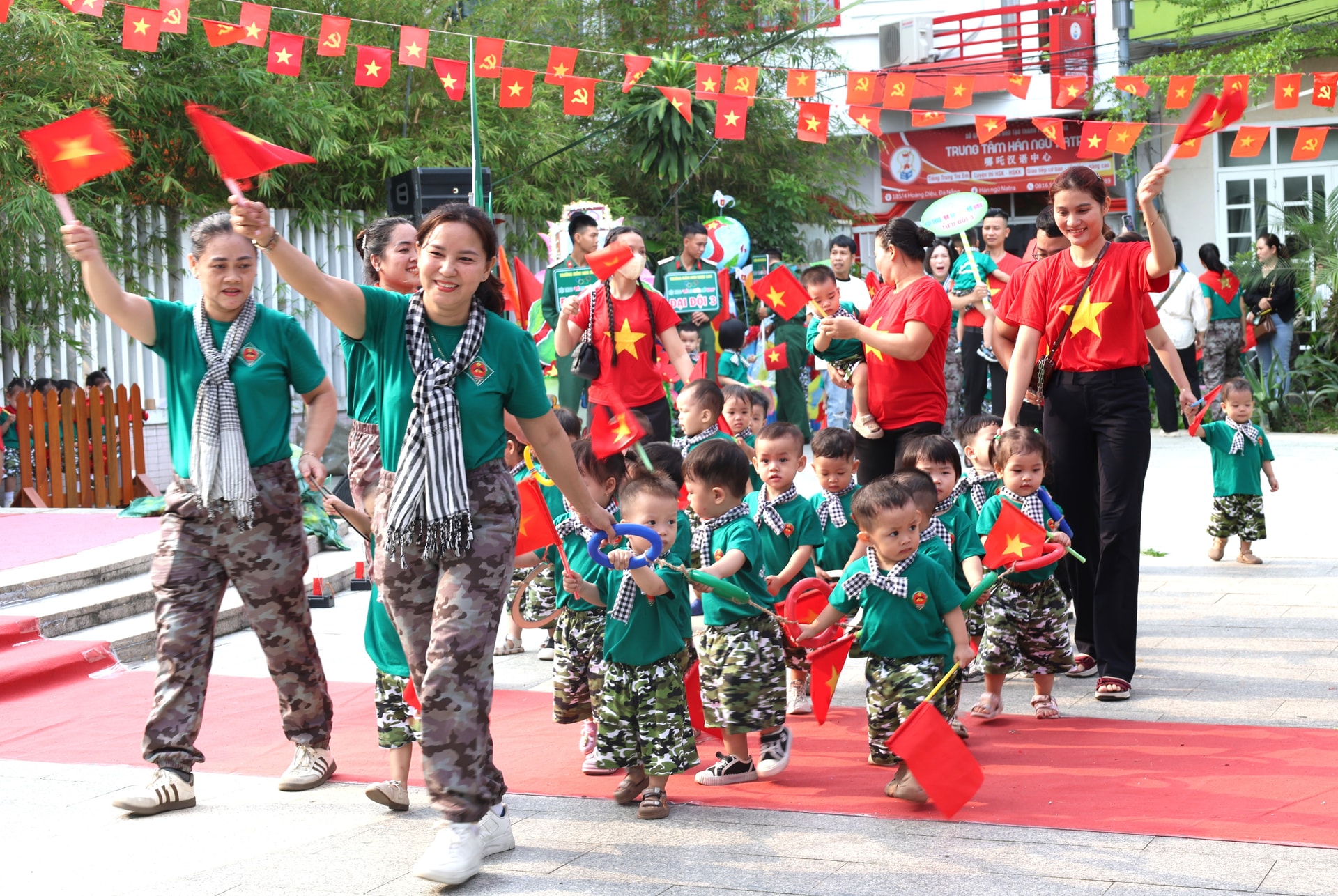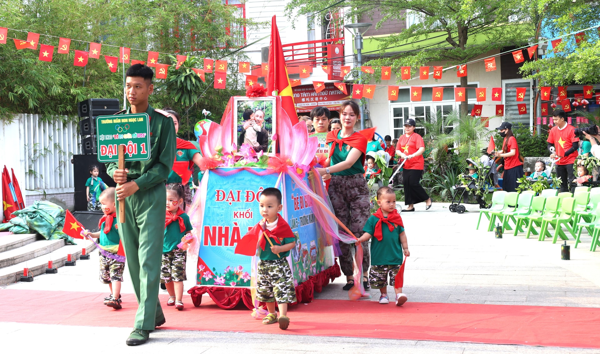 Ngày hội diễn ra sôi nổi với nhiều hoạt động như: diễu hành, biểu diễn văn nghệ và các trò chơi vận động tập thể: vượt hành quân, vận chuyển lương thực, hành trình về Dinh Độc Lập, giải cứu đồng đội, ăn cơm chiến sĩ… Các bé còn được giao lưu, trải nghiệm cùng các chú bộ đội trong nhiều hoạt động ý nghĩa.