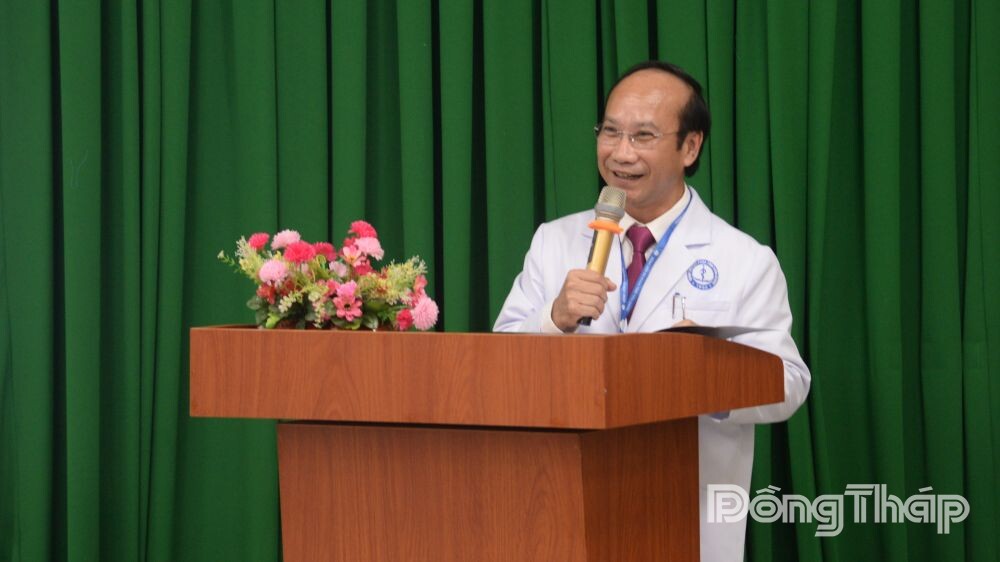 Bác sĩ chuyên khoa II Võ Giáp Hùng, Phó Giám đốc Bệnh viện Đa khoa Tiền Giang, phát biểu tại hội thảo.