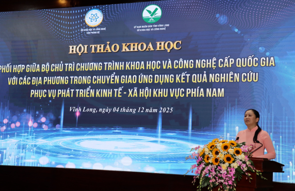 Phát biểu chào mừng hội thảo, bà Đoàn Hồng Hạnh, Giám đốc Sở Khoa học và Công nghệ tỉnh Vĩnh Long nhấn mạnh lãnh đạo tỉnh luôn xác định khoa học, công nghệ, đổi mới sáng tạo và chuyển đổi số là một trong những trụ cột quan trọng thúc đẩy phát triển nhanh và bền vững.