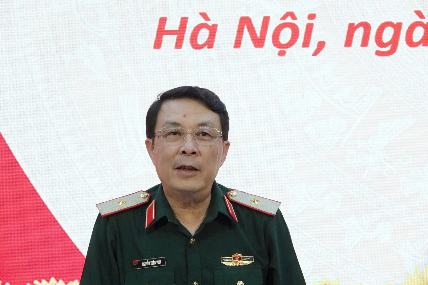 Thiếu tướng Nguyễn Xuân Thủy - Phó Cục trưởng Cục Tuyên huấn (Tổng cục Chính trị Quân đội nhân dân Việt Nam), phát biểu tại họp báo.