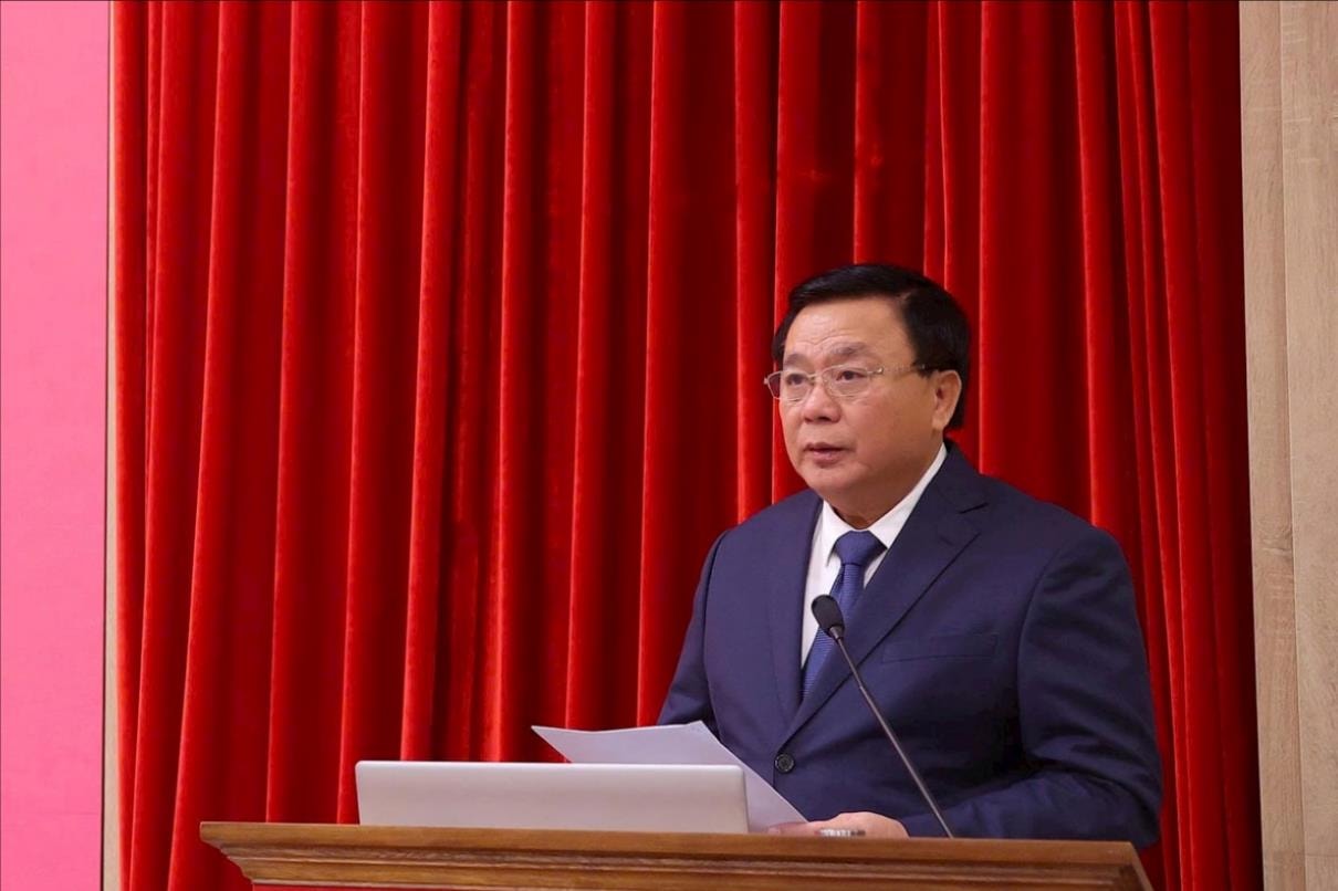 GS.TS Nguyễn Xuân Thắng, Chủ tịch Hội đồng Lý luận Trung ương phát biểu đề dẫn. Ảnh: Hương Ly