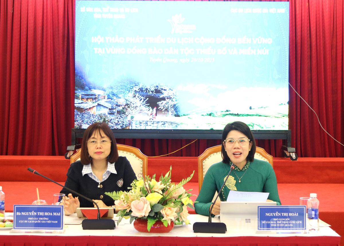 Phát biểu tại hội thảo, đồng chí Nguyễn Thị Hoa Mai nhấn mạnh, phát triển du lịch cộng đồng cần gắn với bảo tồn và phát huy bản sắc văn hóa dân tộc, nâng cao chất lượng dịch vụ và năng lực làm du lịch của người dân. Đồng thời cần tăng cường liên kết vùng, kết nối sản phẩm và thị trường để đưa du lịch cộng đồng hòa nhịp cùng các tuyến du lịch quốc gia và quốc tế.