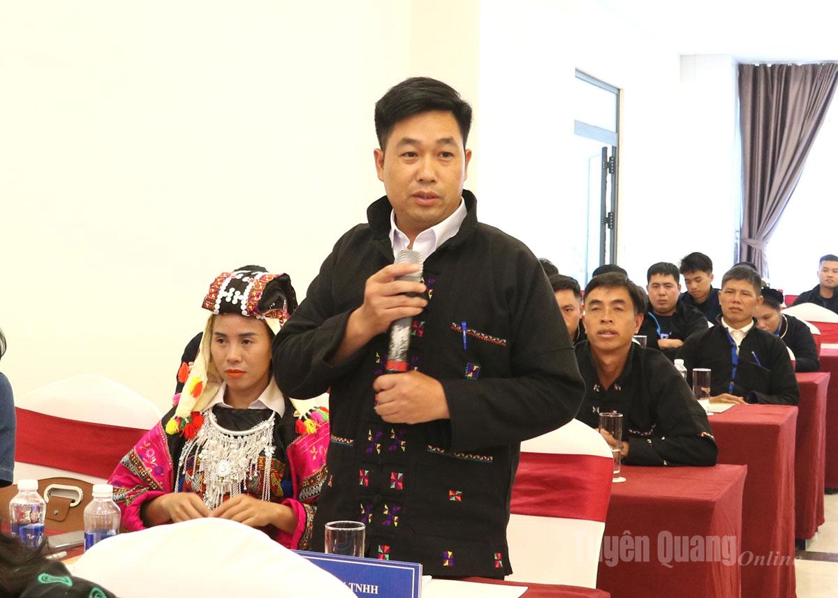 Người dân Làng Văn hóa du lịch cộng đồng thôn Lô Lô Chải, xã Lũng Cú phát biểu tại hội thảo.