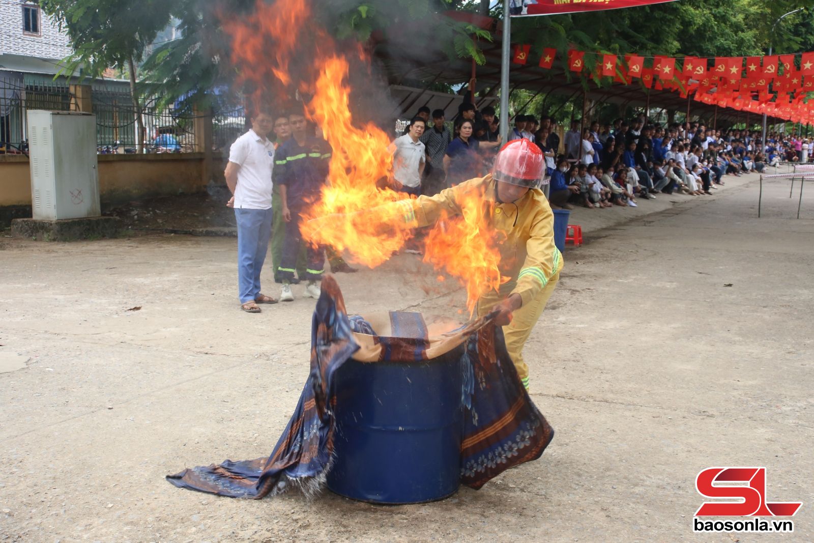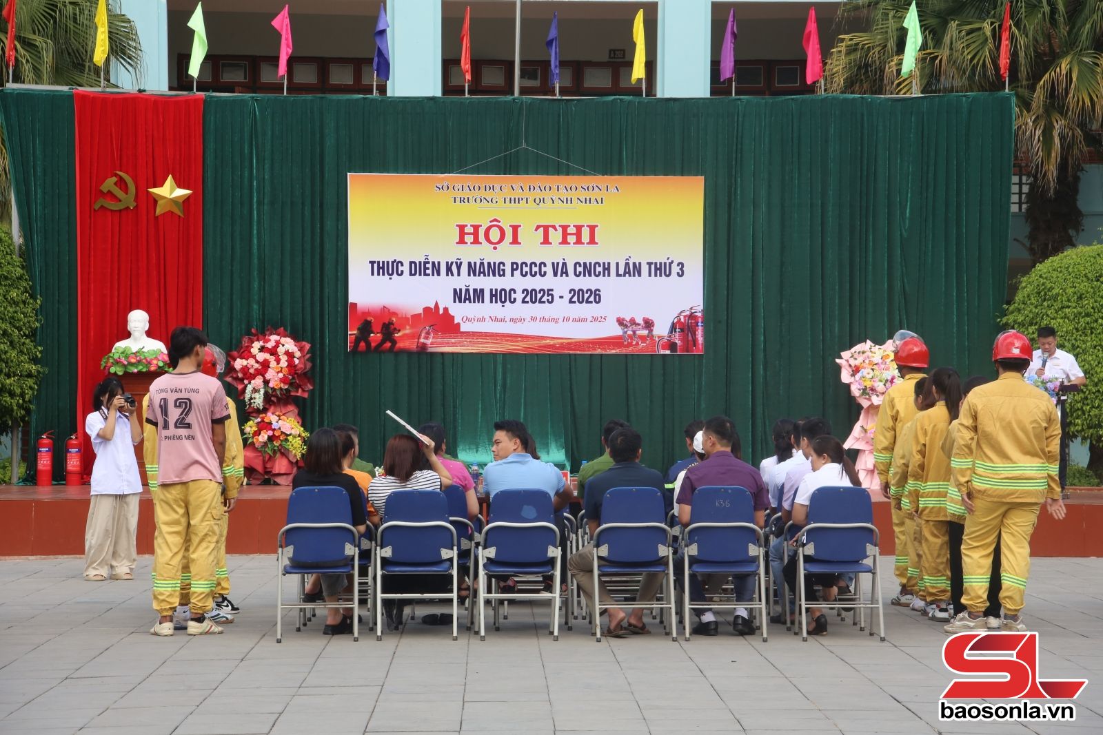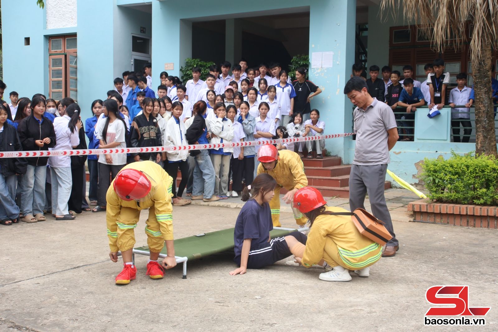 Hội thi thực diễn kỹ năng phòng cháy, chữa cháy và cứu nạn, cứu hộ tại Trường THPT Quỳnh Nhai.