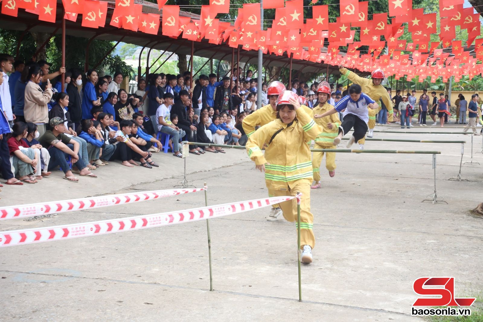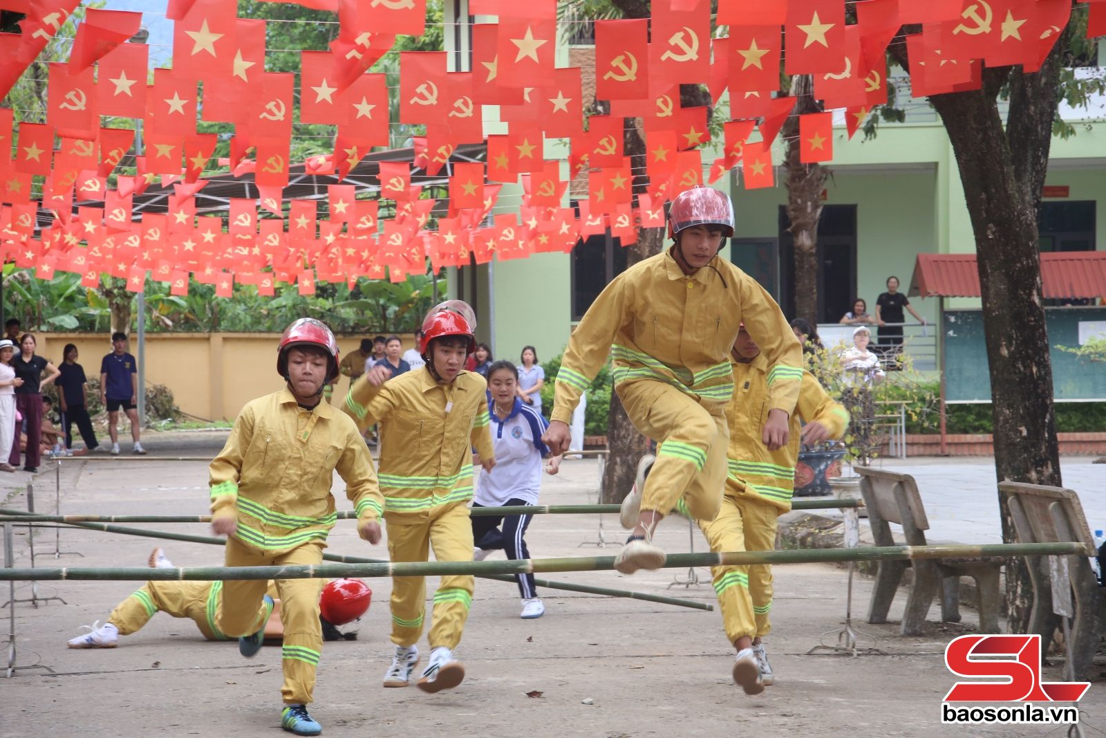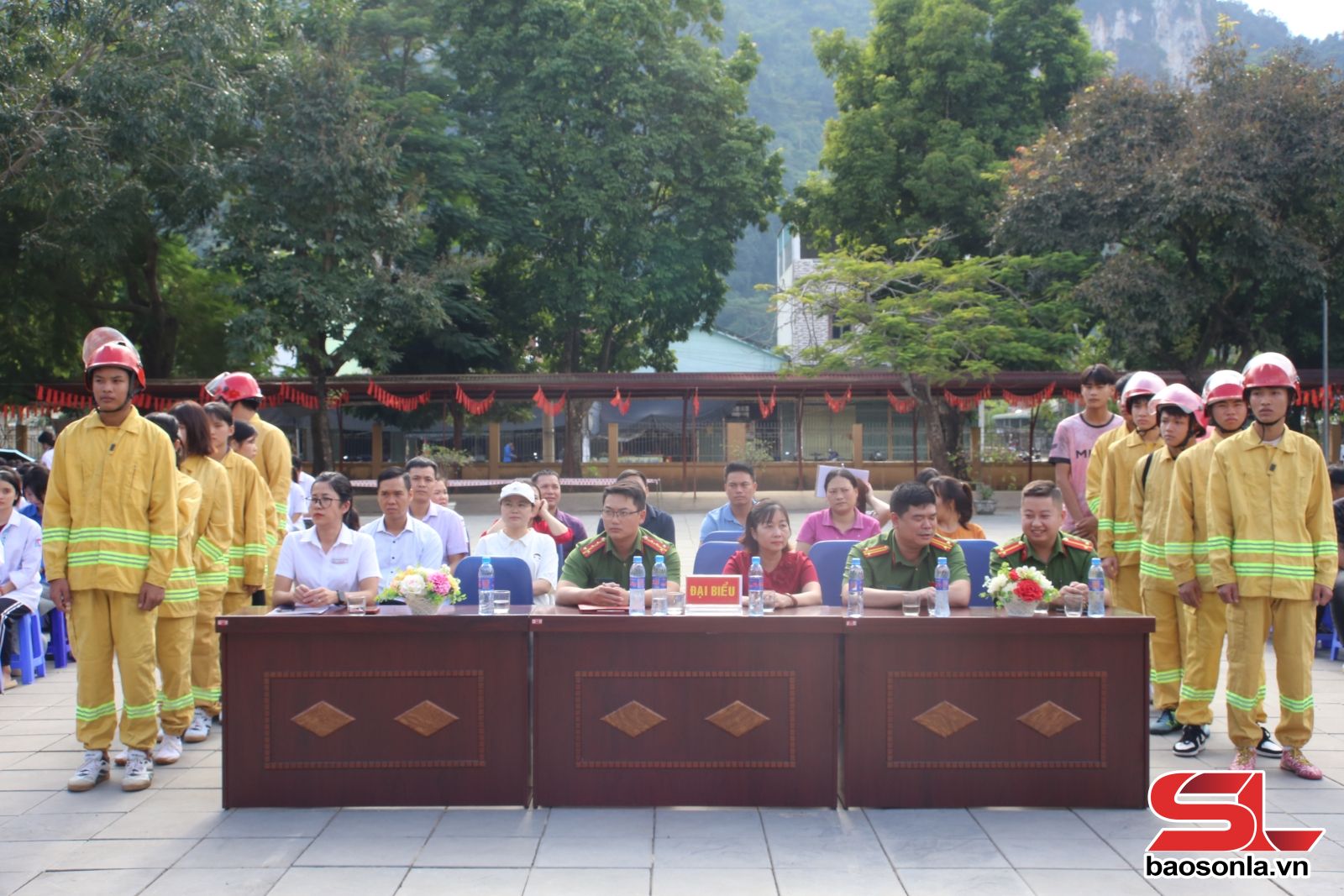 Hội thi thực diễn kỹ năng phòng cháy, chữa cháy và cứu nạn, cứu hộ tại Trường THPT Quỳnh Nhai.