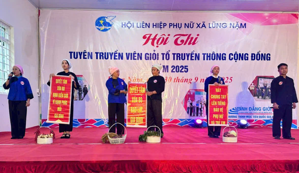 11 đội đại diện cho Tổ truyền thông cộng đồng xóm trên địa bàn xã Lũng Nặm trải qua 3 phần thi, gồm: Màn chào hỏi; thi tiểu phẩm (các đội xây dựng nội dung tuyên truyền phù hợp với thực tế tại cơ sở gắn với bản sắc văn hóa địa phương, lồng ghép về xóa bỏ định kiến giới, tảo hôn và cận huyết thống, phòng, chống bạo lực gia đình, xâm hại, mua bán phụ nữ và trẻ em); phần thi thuyết trình (thể hiện sự hiểu biết và kỹ năng thuyết trình về các quy định pháp luật, chính sách về phụ nữ, trẻ em).