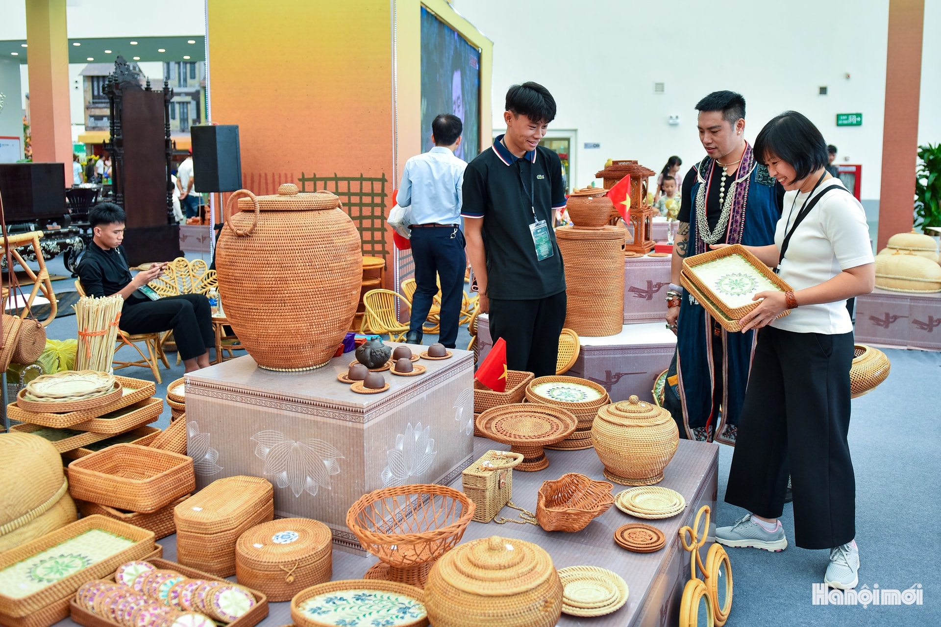 Những chiếc giỏ, rổ và mành tre được đan tỉ mỉ, mang theo hương mộc mạc của làng quê Việt.