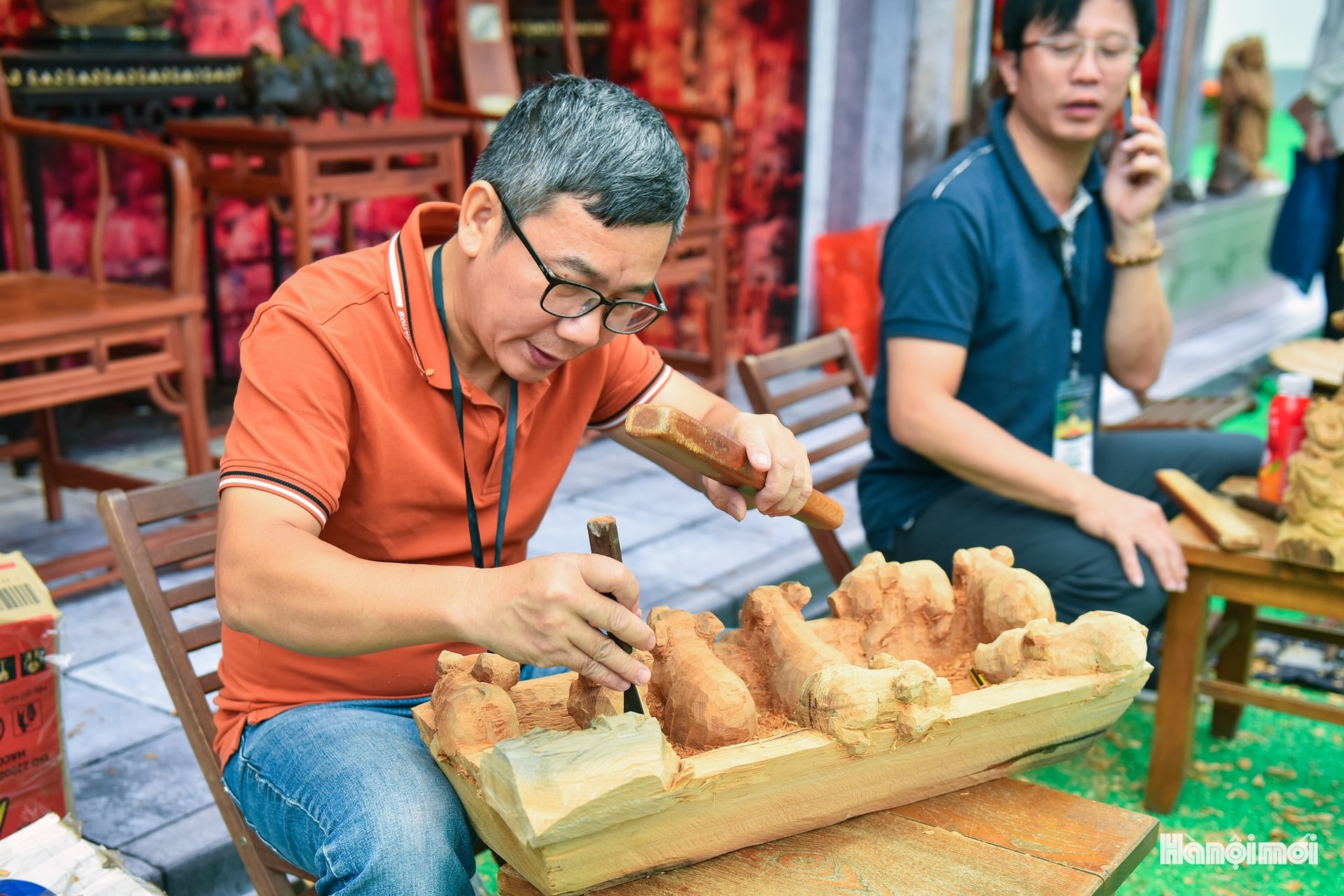 Nghệ nhân tỉ mỉ chạm khắc những con giống từ khúc gỗ ngọc am, phảng phất mùi thơm đặc trưng.