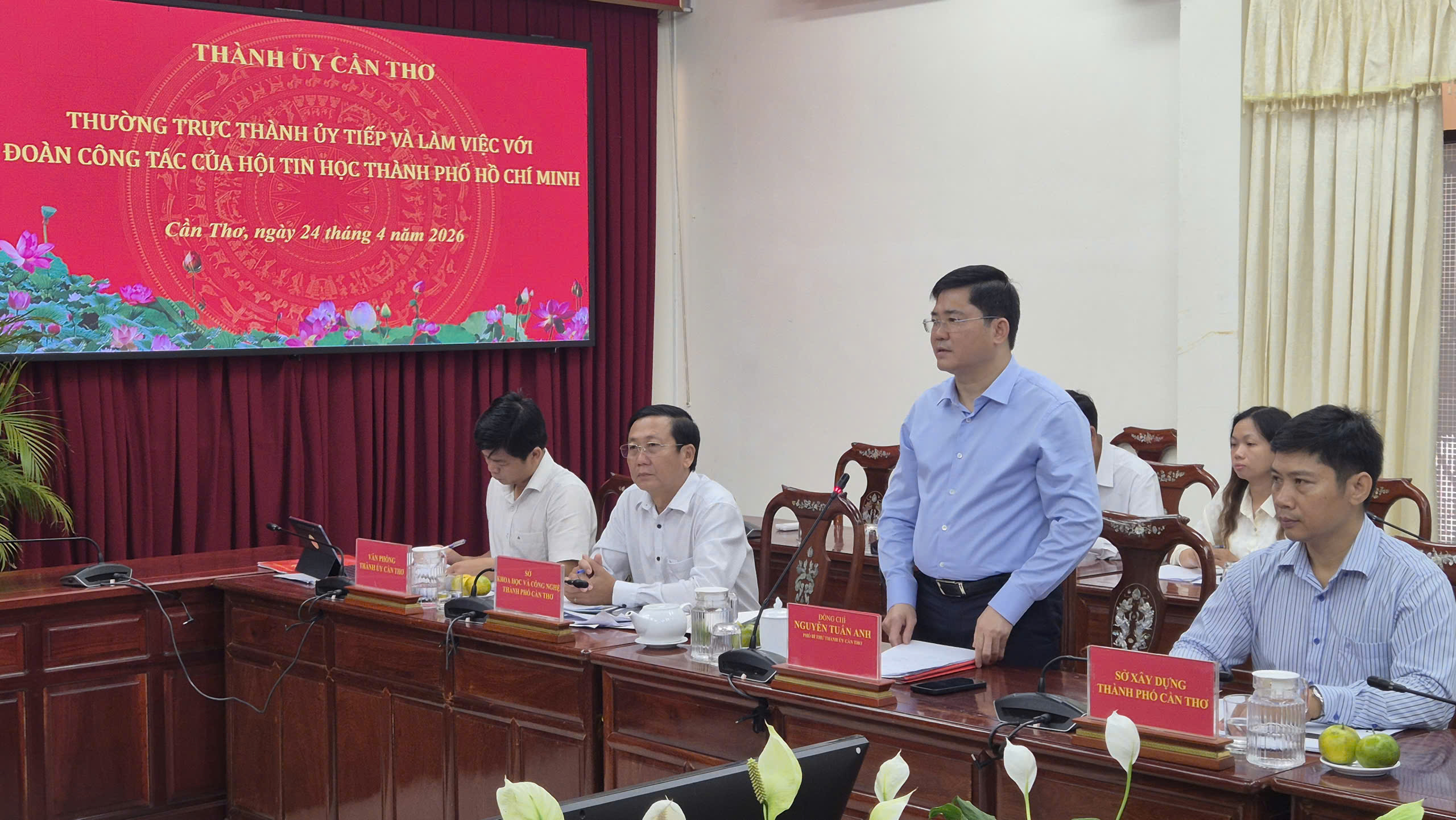 Phó Bí thư Thành ủy Cần Thơ yêu cầu các cơ quan chuyên môn, sở ngành của thành phố khẩn trương trao đổi, chia sẻ thông tin với Hội Tin học TPHCM để triển khai các công việc cụ thể; các đơn vị liên quan sớm có báo cáo, tham mưu đề xuất Ban Thường vụ Thành ủy xem xét quyết định để cân đối, bố trí nguồn lực triển khai. Đặc biệt, quá trình trao đổi thông tin, bàn giải pháp thực hiện, các bên cần bám sát với điều kiện thực tiễn tại TP Cần Thơ, nhằm đảm bảo các giải pháp mang tính khả thi, hiệu quả.