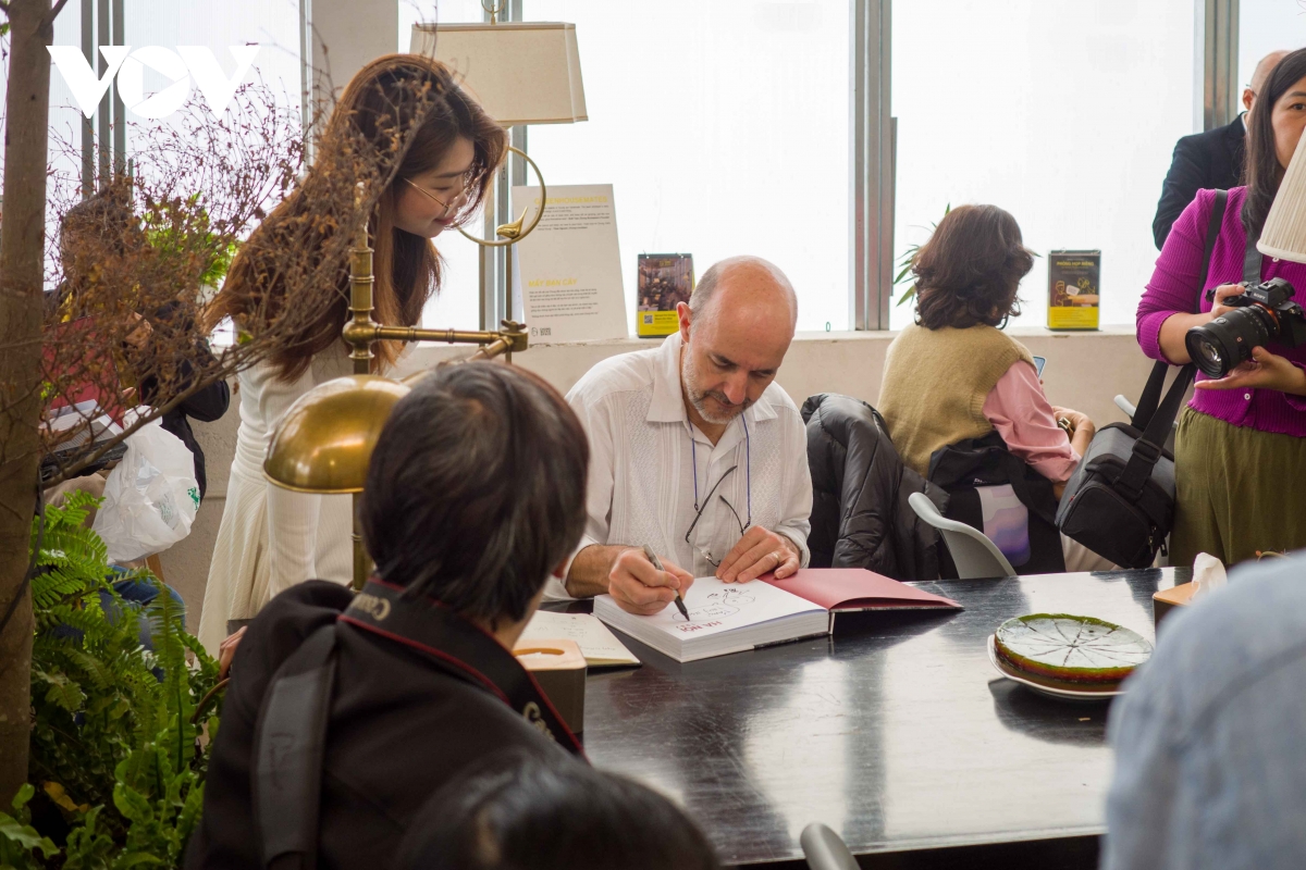Jean-Charles Sarrazin ký tặng sách cho những độc giả yêu mến Hà Nội xưa và các nhiếp ảnh gia quan tâm.