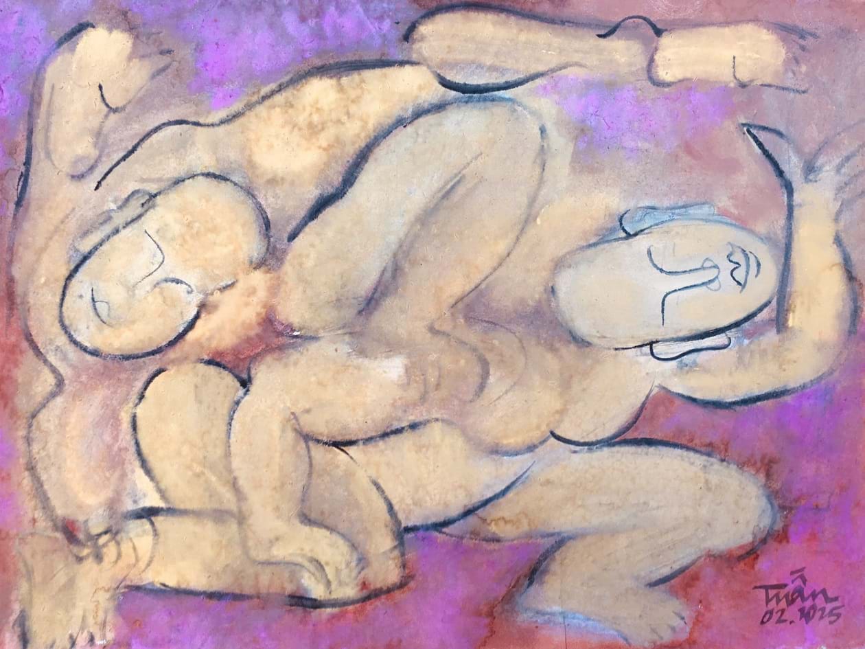 Người tưởng như ở thế yếu lại hóa mạnh, thế công chuyển thành thế thủ, sức mạnh cơ bắp phải nhường chỗ cho sự khéo léo và linh hoạt. Tranh: Trần Tuấn