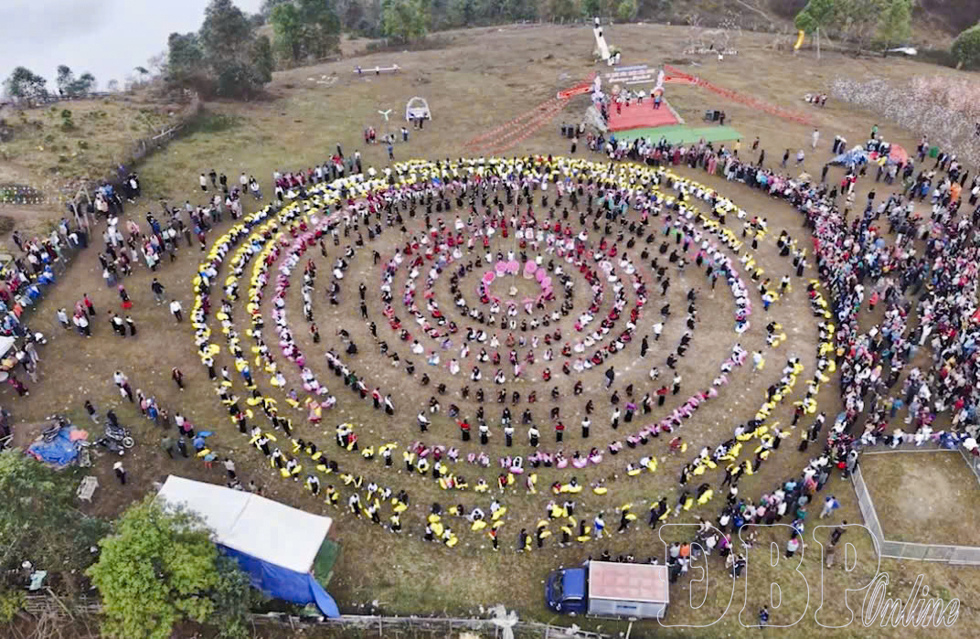 Vòng xòe đoàn kết hơn 1.000 người tại Kể Cải, xã Tủa Chùa.