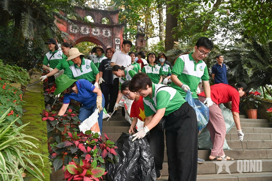 Tổ chức thu gom rác thải tại Khu Di tích lịch sử Đền Hùng.