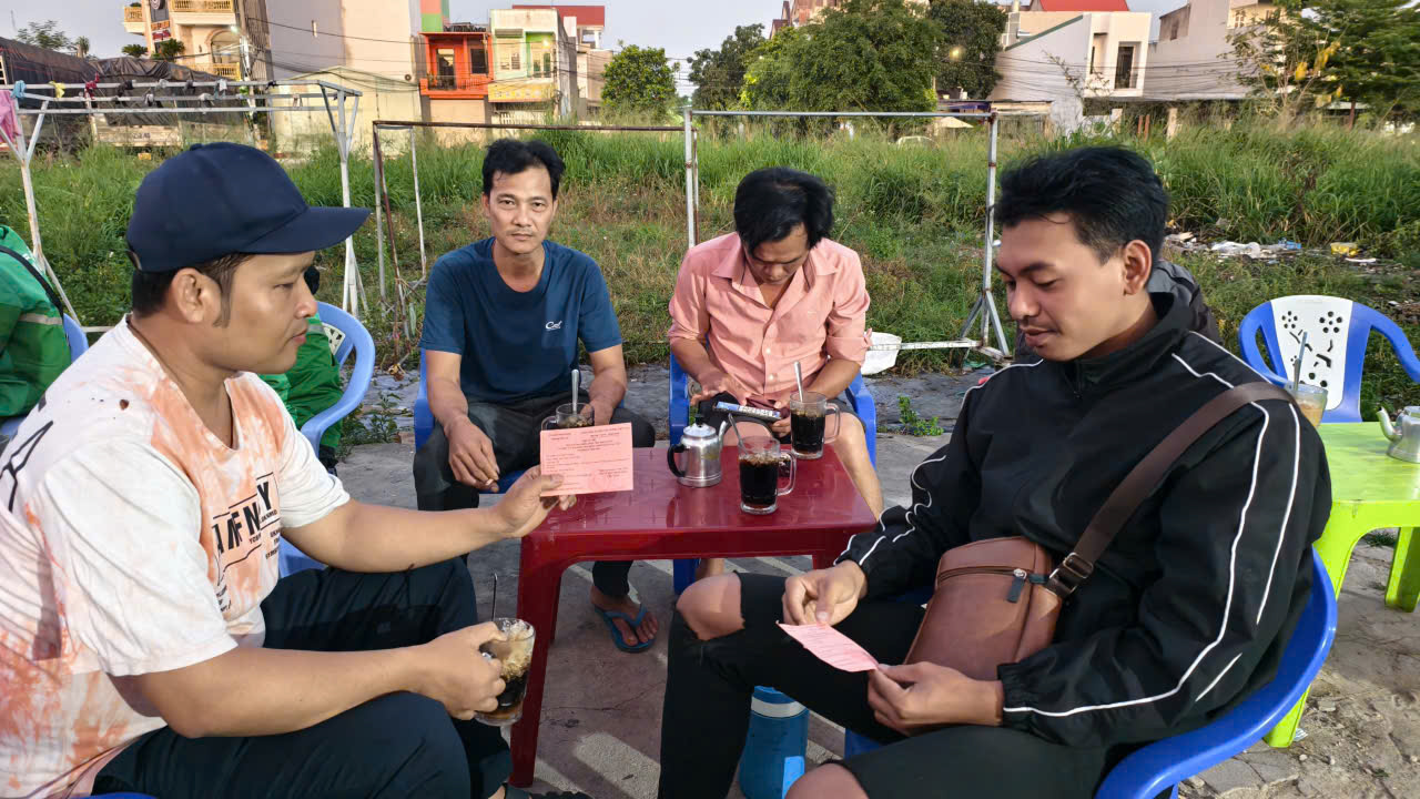 Công nhân sinh sống tại các khu nhà trọ thuộc khu phố Phú Hòa 9, phường Phú Lợi (TPHCM) dậy sớm với lá phiếu trên tay, cùng tham gia ngày hội toàn dân. Ảnh: TÂM TRANG