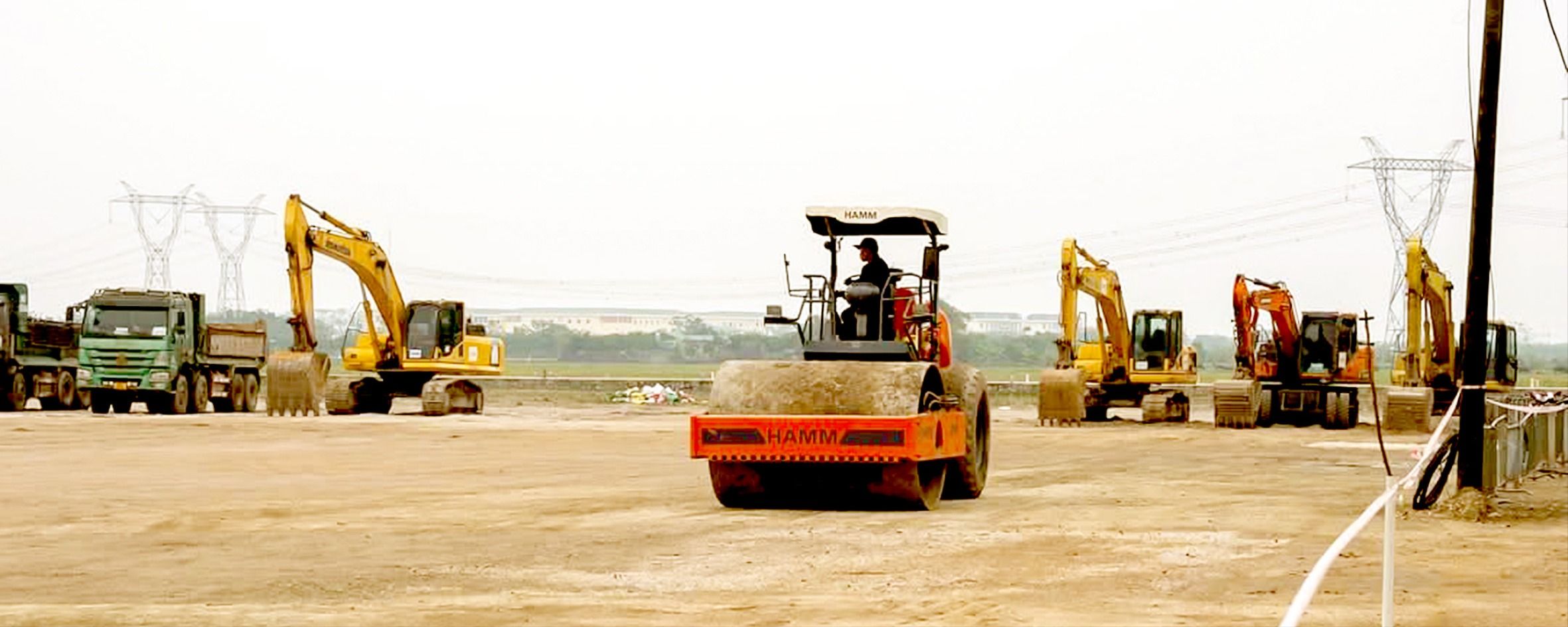 Khu vực mặt bằng tại xã Thượng Phúc, Hà Nội đã được làm sạch và tập kết máy móc cho lễ khởi công Khu đô thị thể thao Olympic