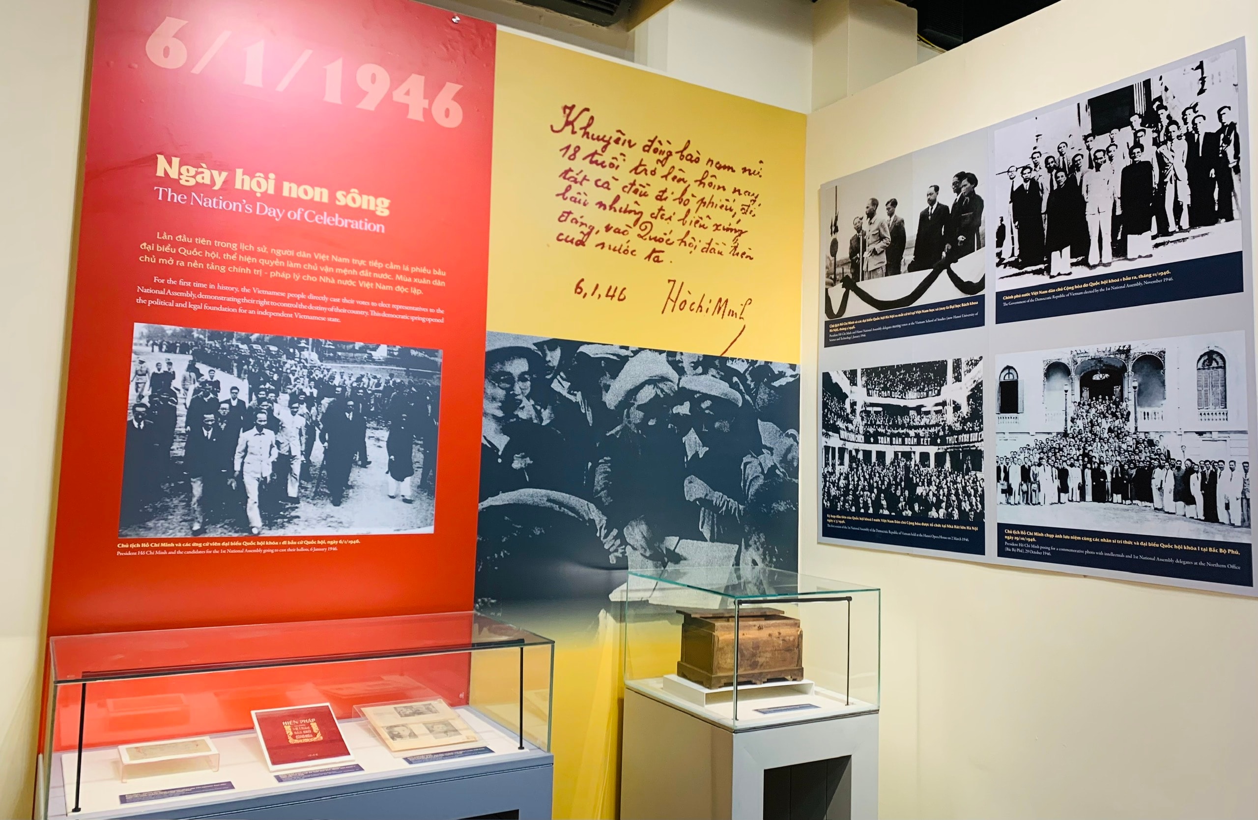Trong triển lãm, sưu tập hình ảnh, hiện vật, tài liệu về cuộc Tổng tuyển cử ngày 6/1/1946 và Quốc hội Khóa I đã được giới thiệu. Tiêu biểu là hòm phiếu dùng trong ngày bầu cử Quốc hội Khóa I của nhân dân huyện Tuyên Hóa, tỉnh Quảng Bình, ngày 6/1/1946…