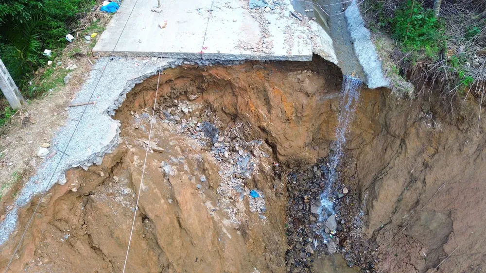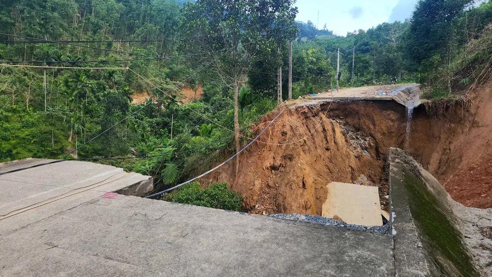 Tuyến đường bị chia cắt hoàn toàn, khiến hơn 1.000 hộ dân rơi vào tình trạng khó khăn, sinh hoạt và sản xuất bị đảo lộn.