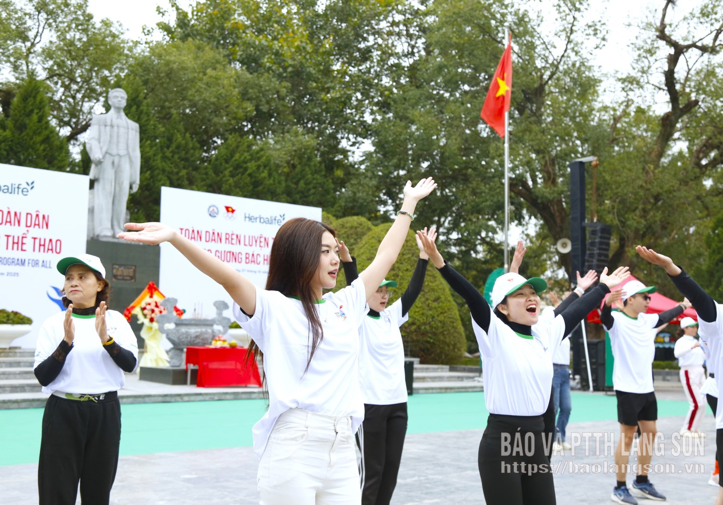 Các đồng chí đại biểu cùng Nhân dân trên địa bàn tham gia hoạt động thể dục cộng đồng