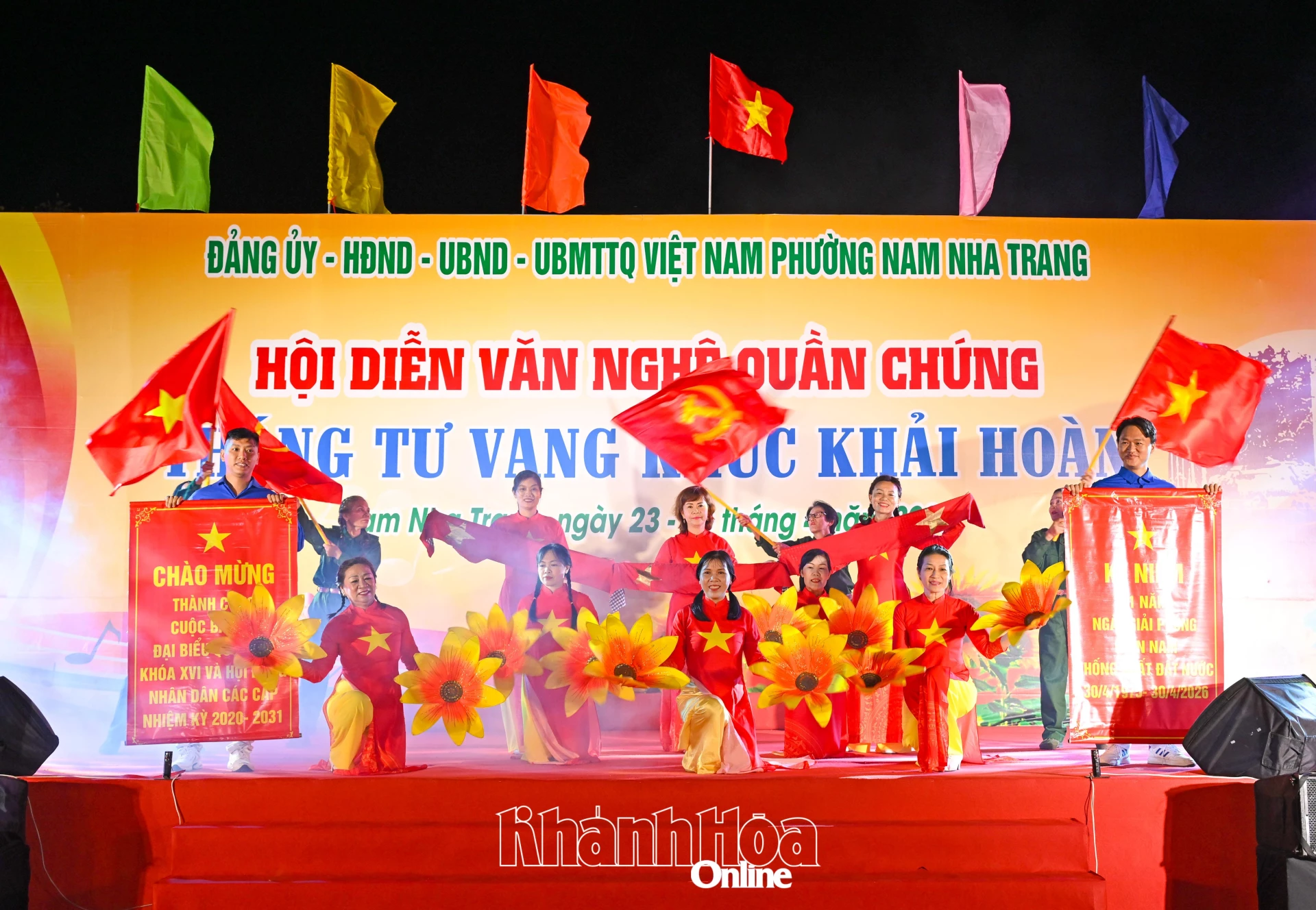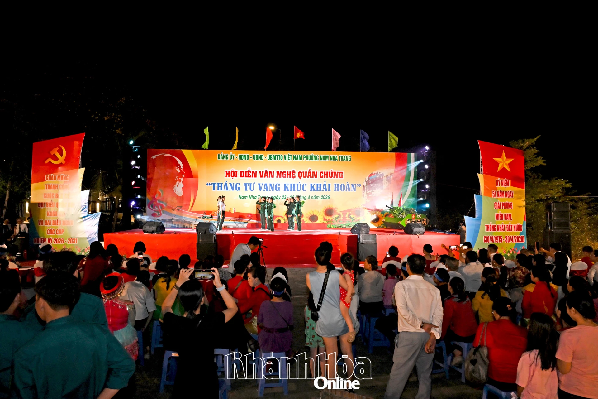 Tối 23-4, tại sân bóng Phước Long, phường Nam Nha Trang tổ chức Hội diễn văn nghệ quần chúng “Tháng Tư vang khúc khải hoàn”, chào mừng thành công cuộc bầu cử đại biểu Quốc hội khóa XVI và đại biểu HĐND các cấp nhiệm kỳ 2026 - 2031, kỷ niệm 51 năm Ngày Giải phóng miền Nam, thống nhất đất nước (30-4-1975 - 30-4-2026).