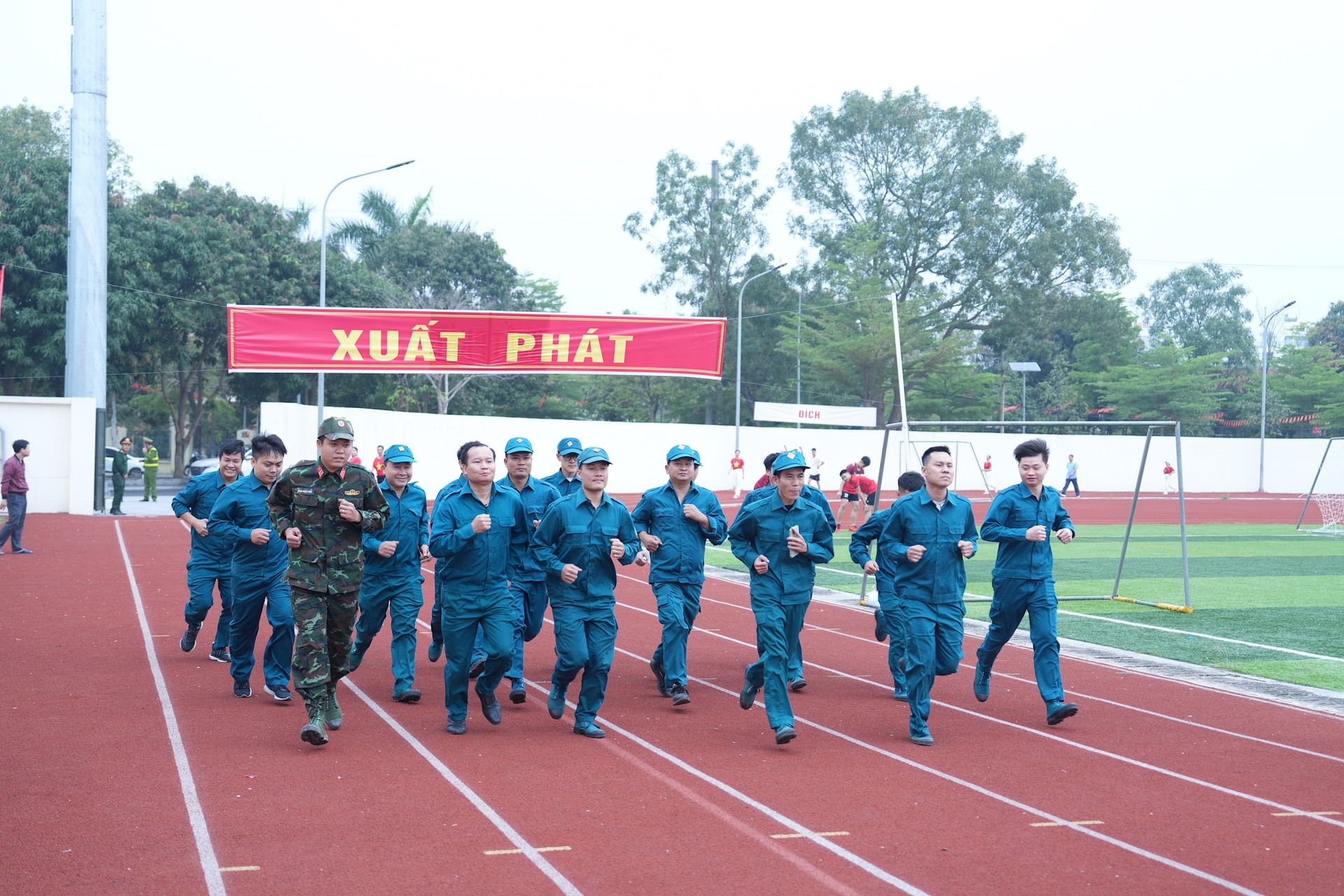 Lực lượng dân quân tự vệ tham gia chạy hưởng ứng. Ảnh: Thiên Tú
