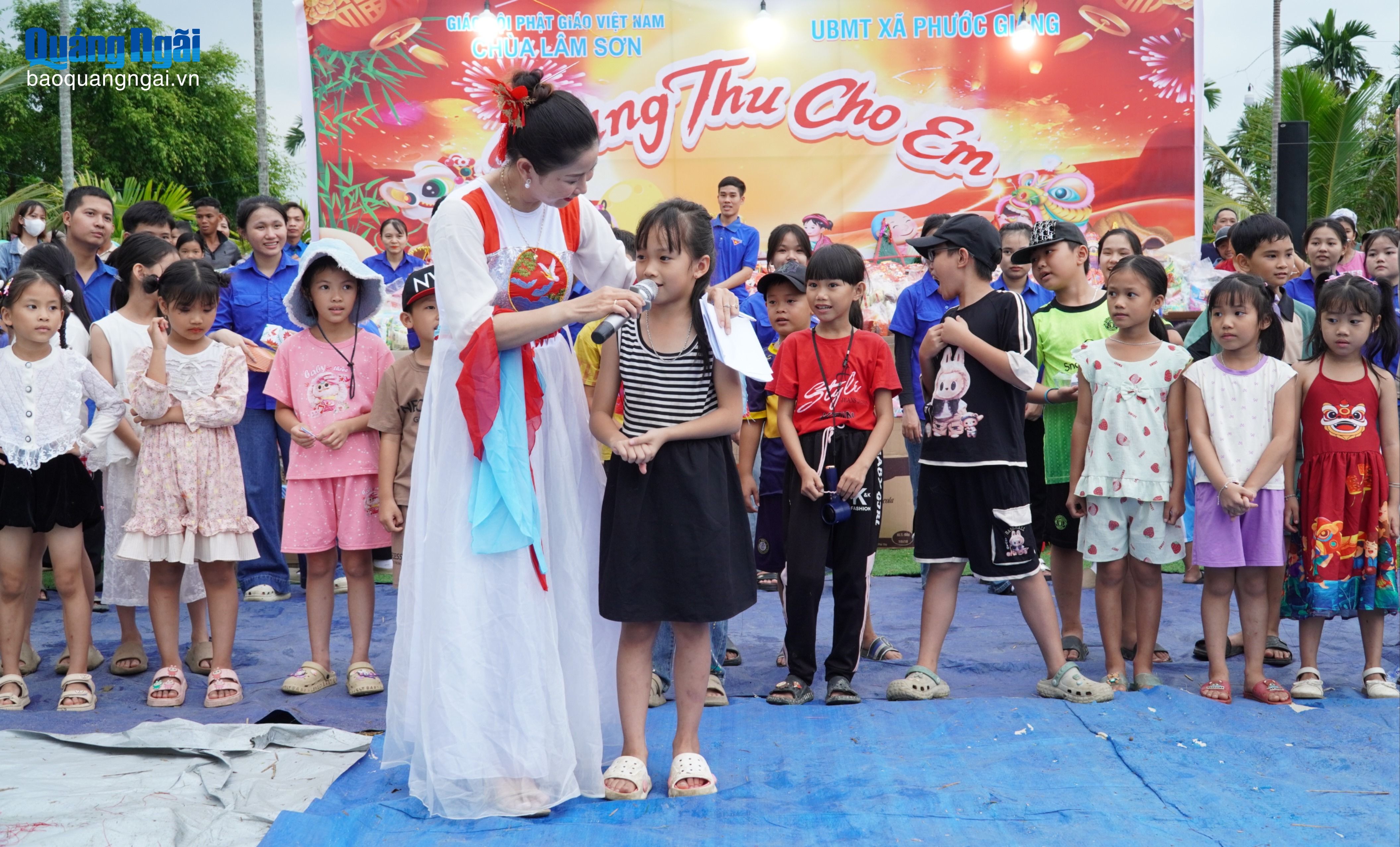Chiều 4/10, Ủy ban MTTQ Việt Nam xã Phước Giang phối hợp với chùa Lâm Sơn tổ chức chương trình “Vui tết Trung thu” năm 2025. Tại chương trình, các thiếu nhi được xem nhiều tiết mục văn nghệ đặc sắc, tham gia các trò chơi dân gian, xem múa lân sư rồng, rước đèn trung thu và phá cỗ truyền thống…