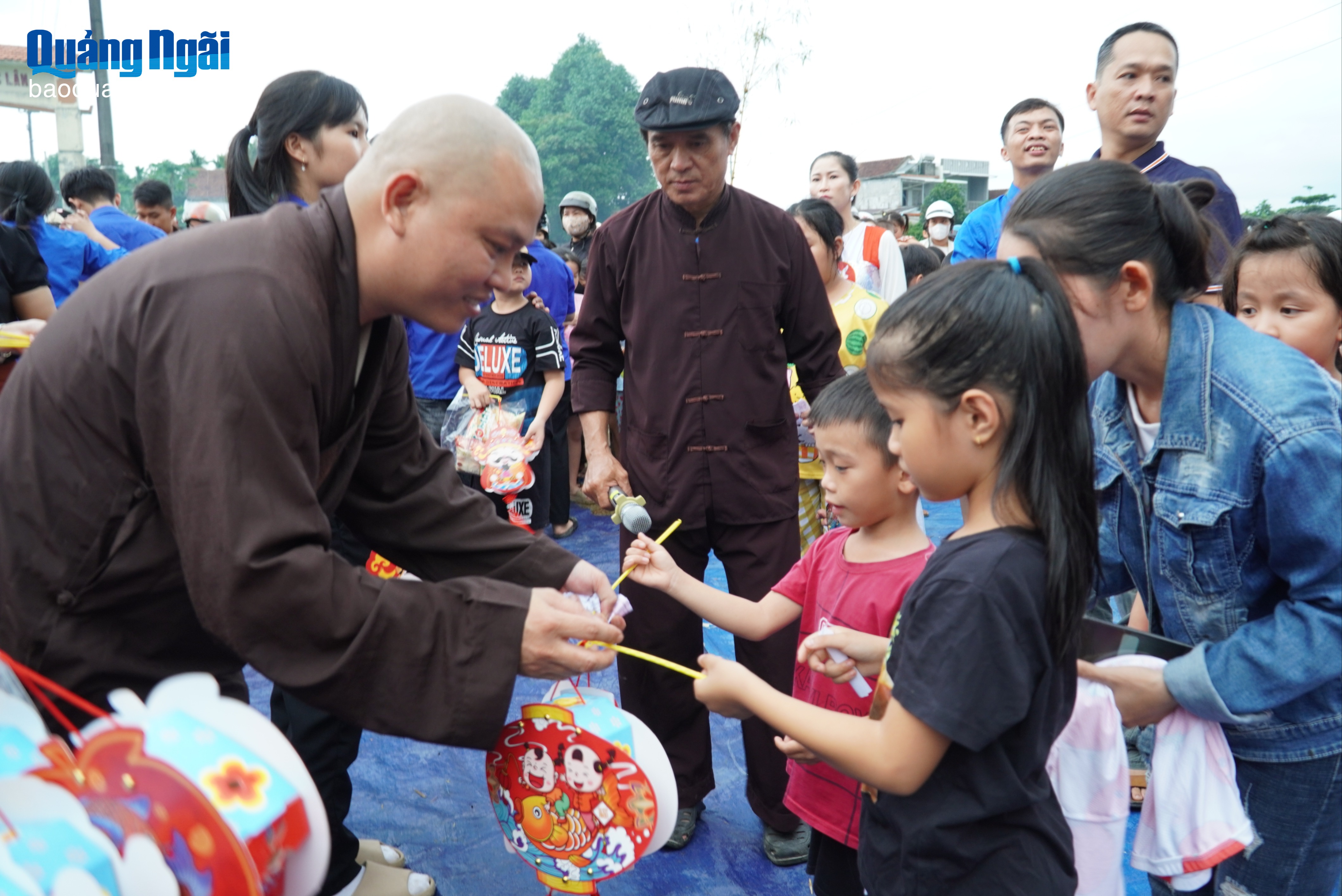 Trụ trì chùa Lâm Sơn, Đại đức Thích Hữu Hoàn tặng quà trung thu và lồng đèn cho các cháu thiếu nhi.