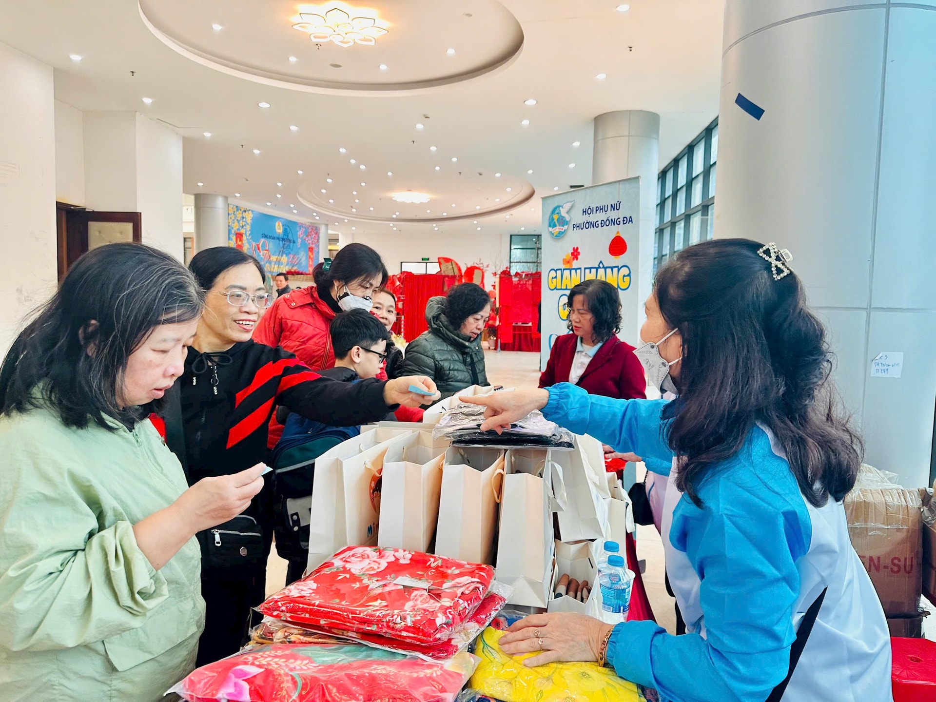 Đáng chú ý, không gian bên ngoài hội trường cũng diễn ra vô cùng sôi nổi. Điểm nhấn thu hút đông đảo bà con là 2 gian hàng 0 đồng do Hội Liên hiệp Phụ nữ và Đoàn Thanh niên phường triển khai, mang đến những nhu yếu phẩm thiết thực cho người dân khó khăn.