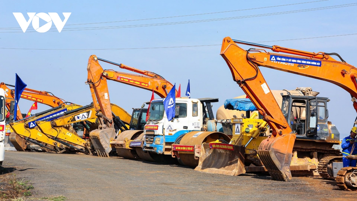 Máy móc, thiết bị được huy động phục vụ thi công dự án sửa chữa, nâng cấp khu bay Cảng hàng không quốc tế Liên Khương.