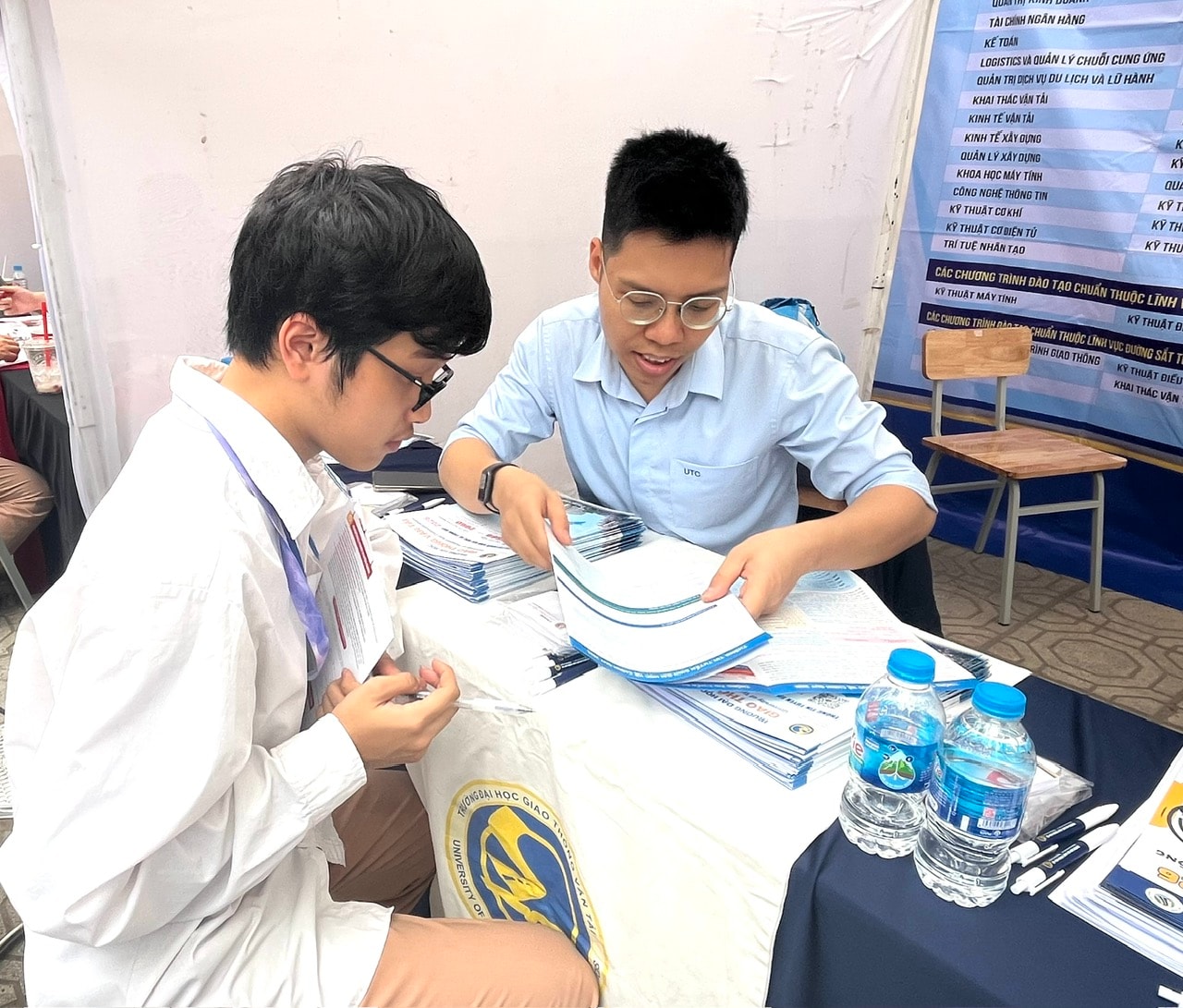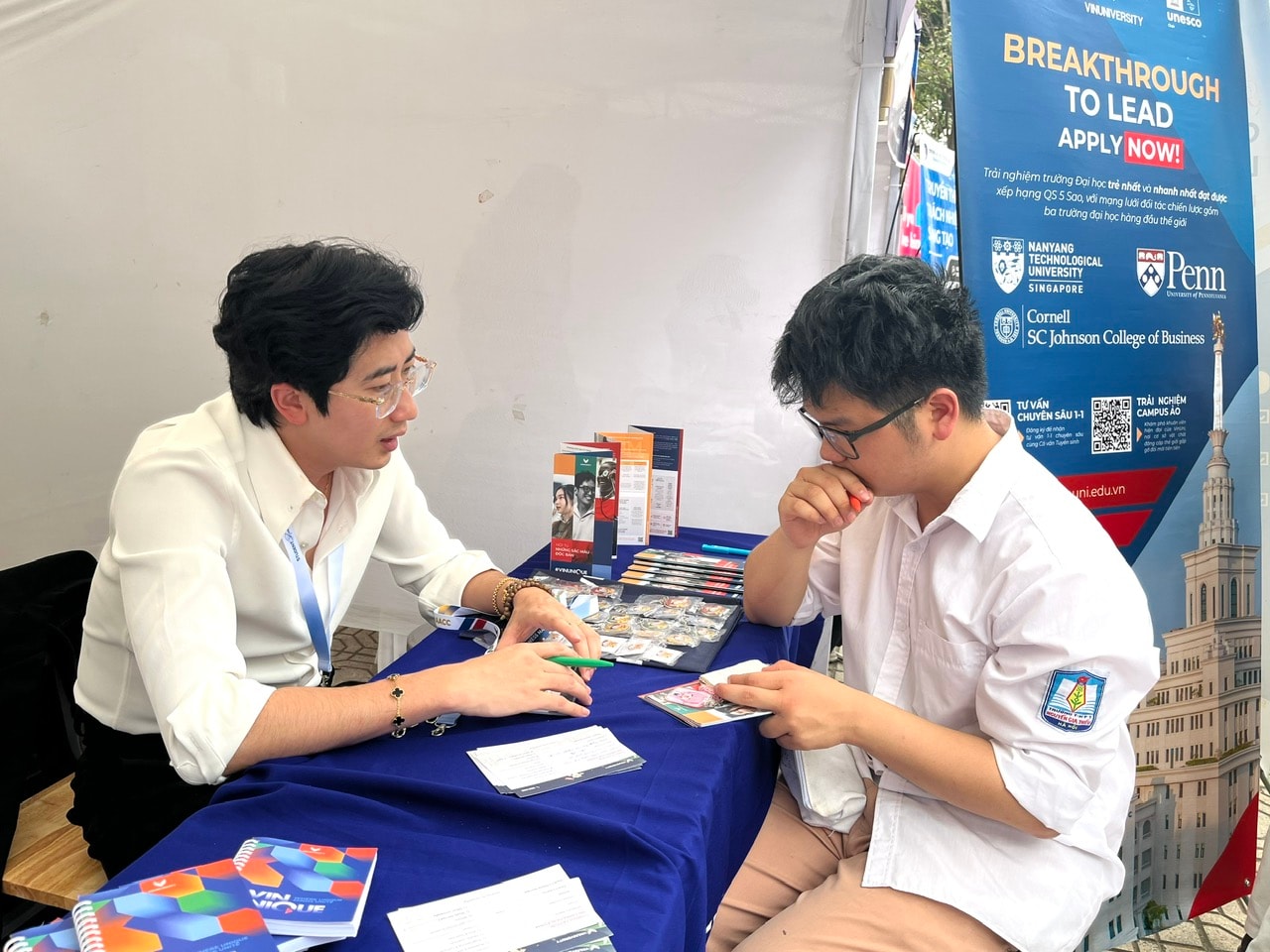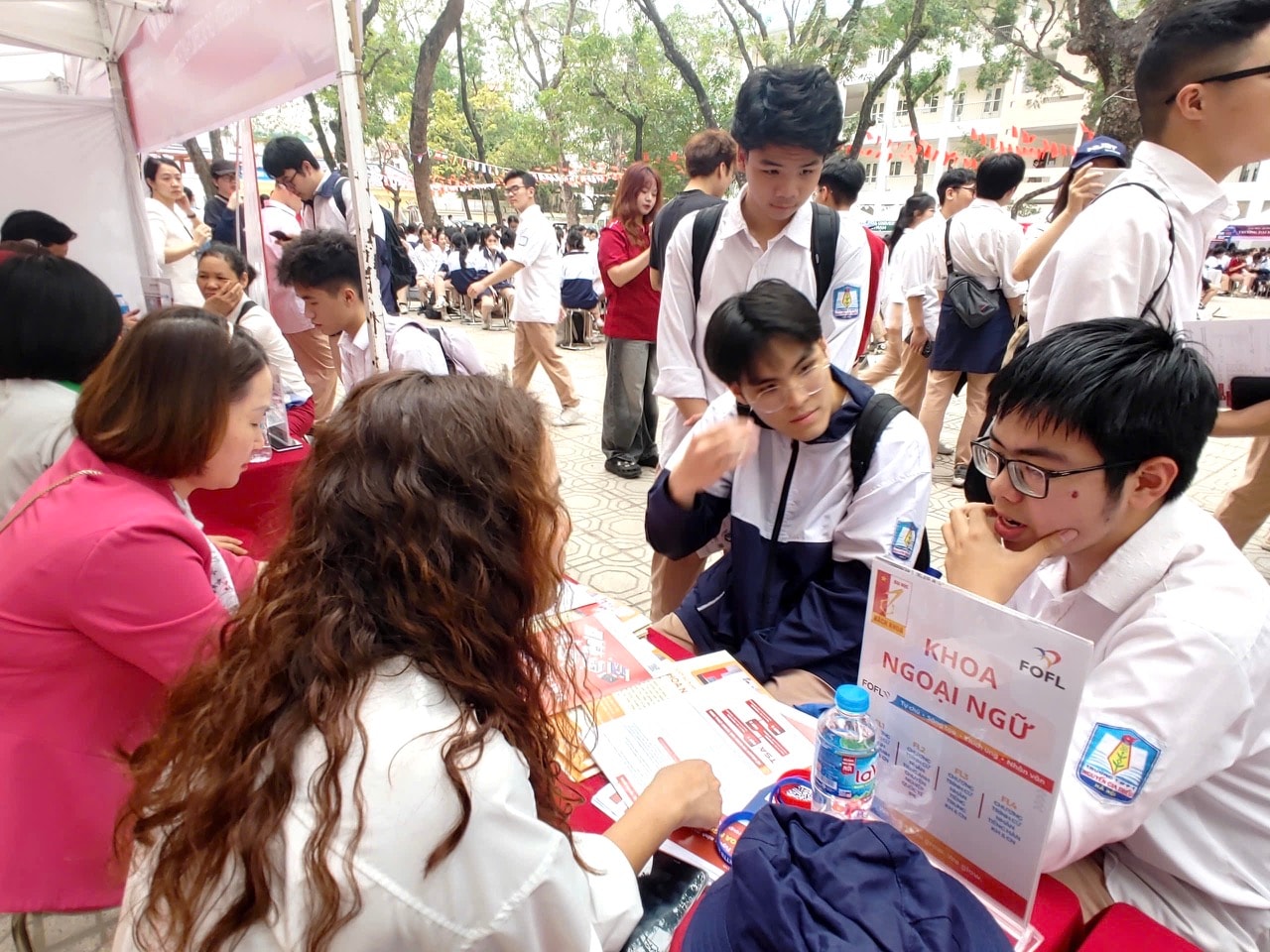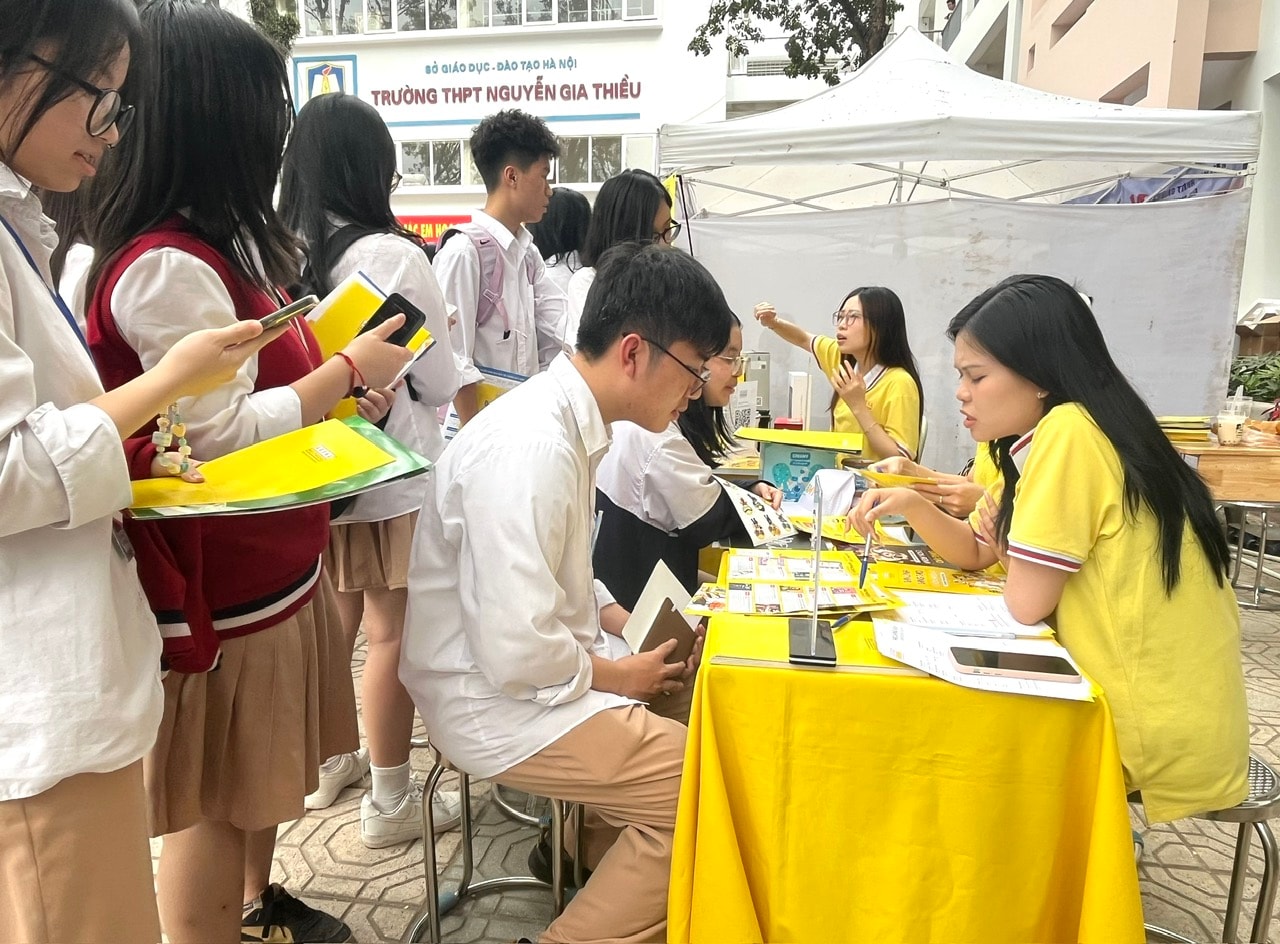 Không chỉ dừng lại ở việc cung cấp thông tin, Ngày hội còn tạo điều kiện để học sinh trải nghiệm thực tế môi trường tư vấn tuyển sinh. Tại các gian hàng, học sinh có thể tìm hiểu sâu hơn về chương trình đào tạo, cơ hội việc làm cũng như yêu cầu đầu vào của từng ngành học.