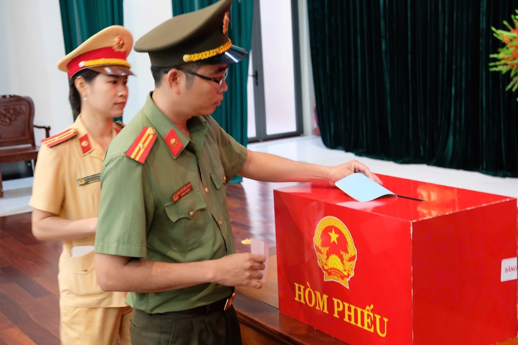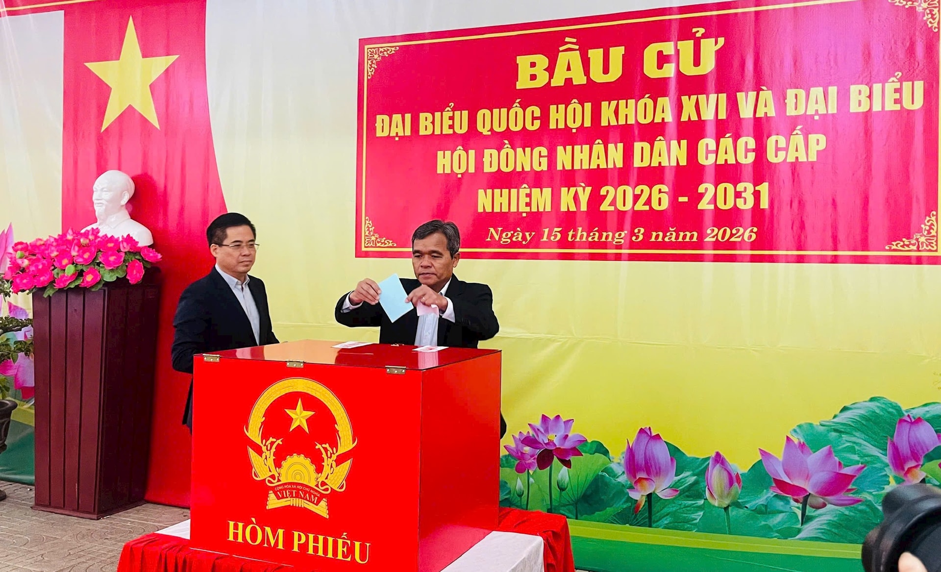Sau lễ chào cờ trang nghiêm, tổ bầu cử tiến hành kiểm tra và niêm phong hòm phiếu theo đúng quy định. Bí thư Tỉnh ủy Hồ Văn Niên và Chủ tịch UBND tỉnh Nguyễn Hoàng Giang đã bỏ những lá phiếu đầu tiên, thể hiện trách nhiệm và nghĩa vụ của công dân đối với sự kiện chính trị quan trọng của đất nước.